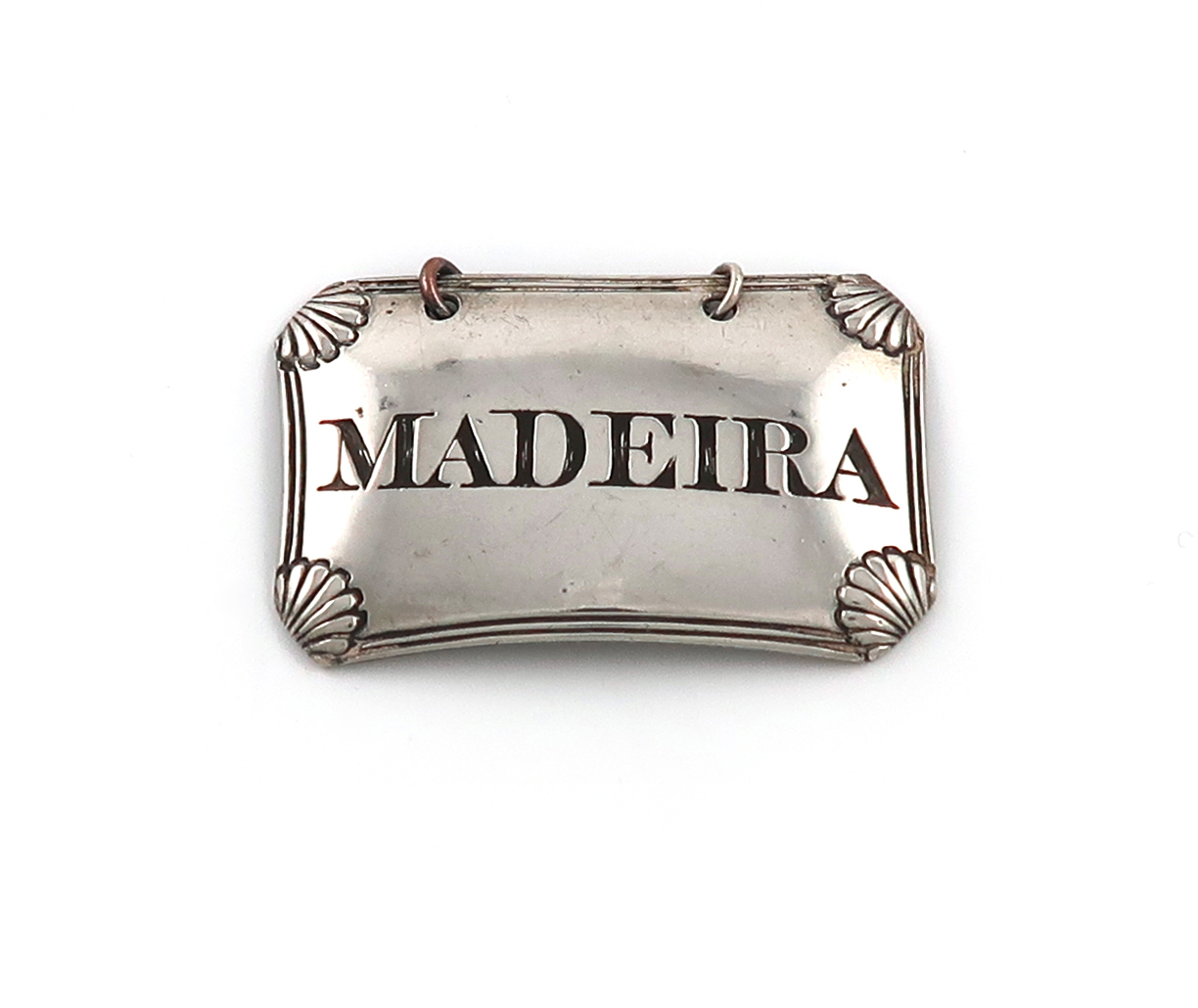 rectangular form, reeded border, the corner with shell motifs, incised and blackened 'MADEIRA', length 4.5cm, approx. weight 0.3oz.