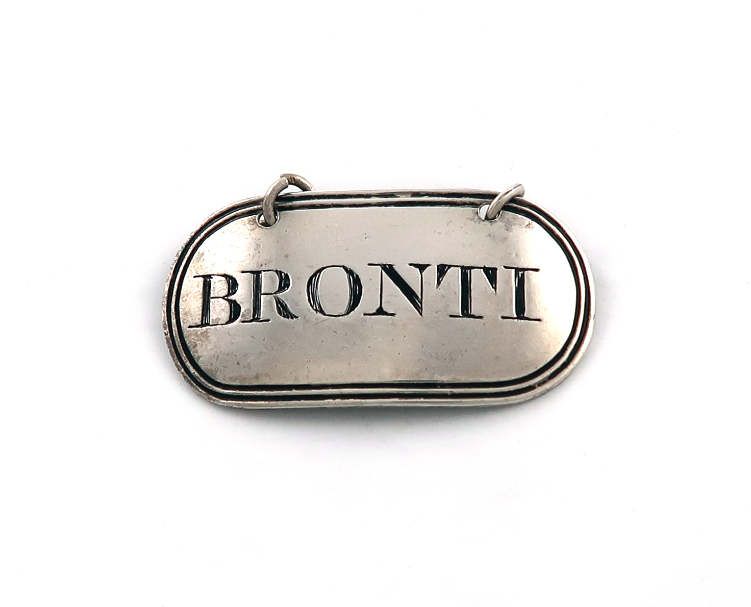 of a rounded rectangular form, reeded border, incised 'BRONTI', length 4.2cm, approx. weight 0.2oz.