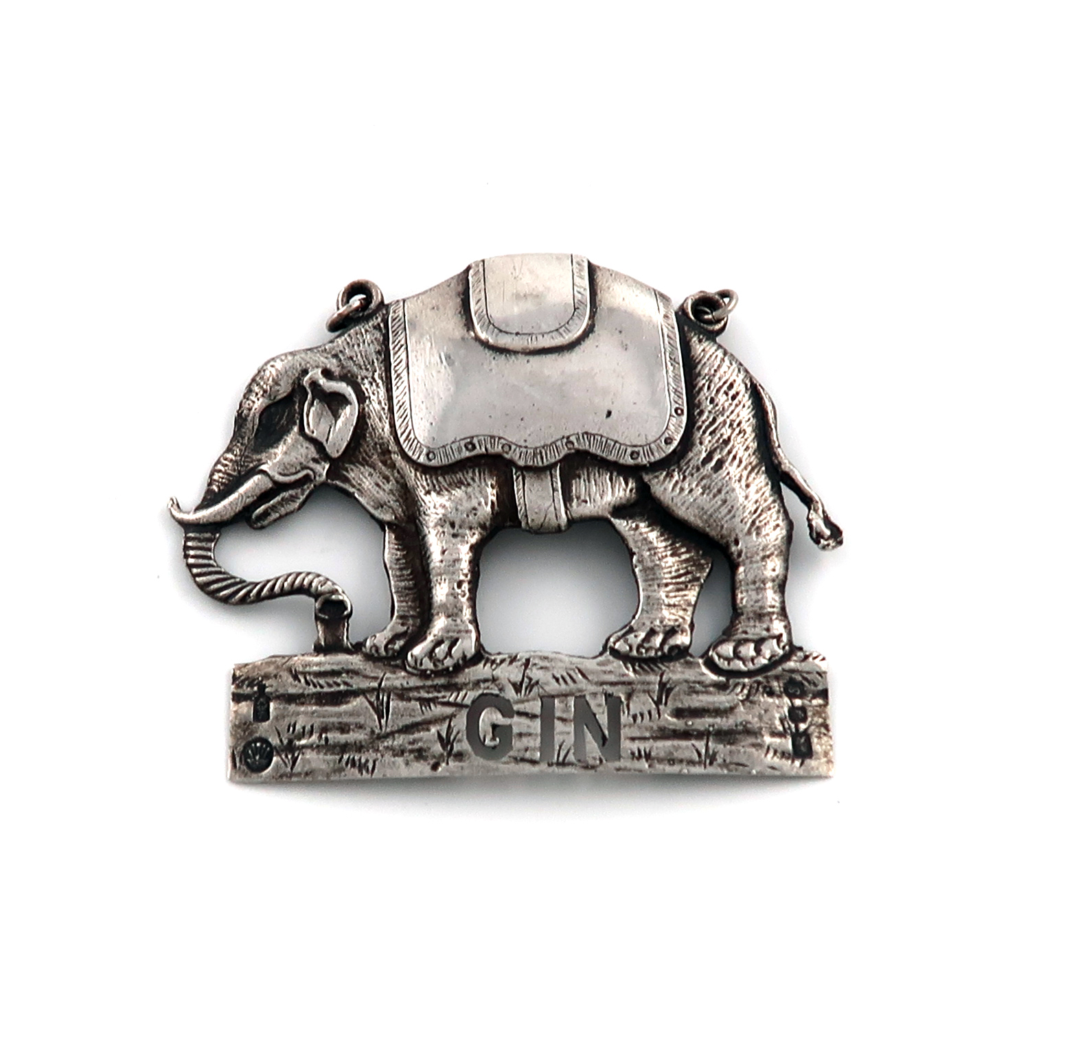 modelled as a standing elephant, pierced 'GIN', height 6cm, approx. weight 1.3oz.