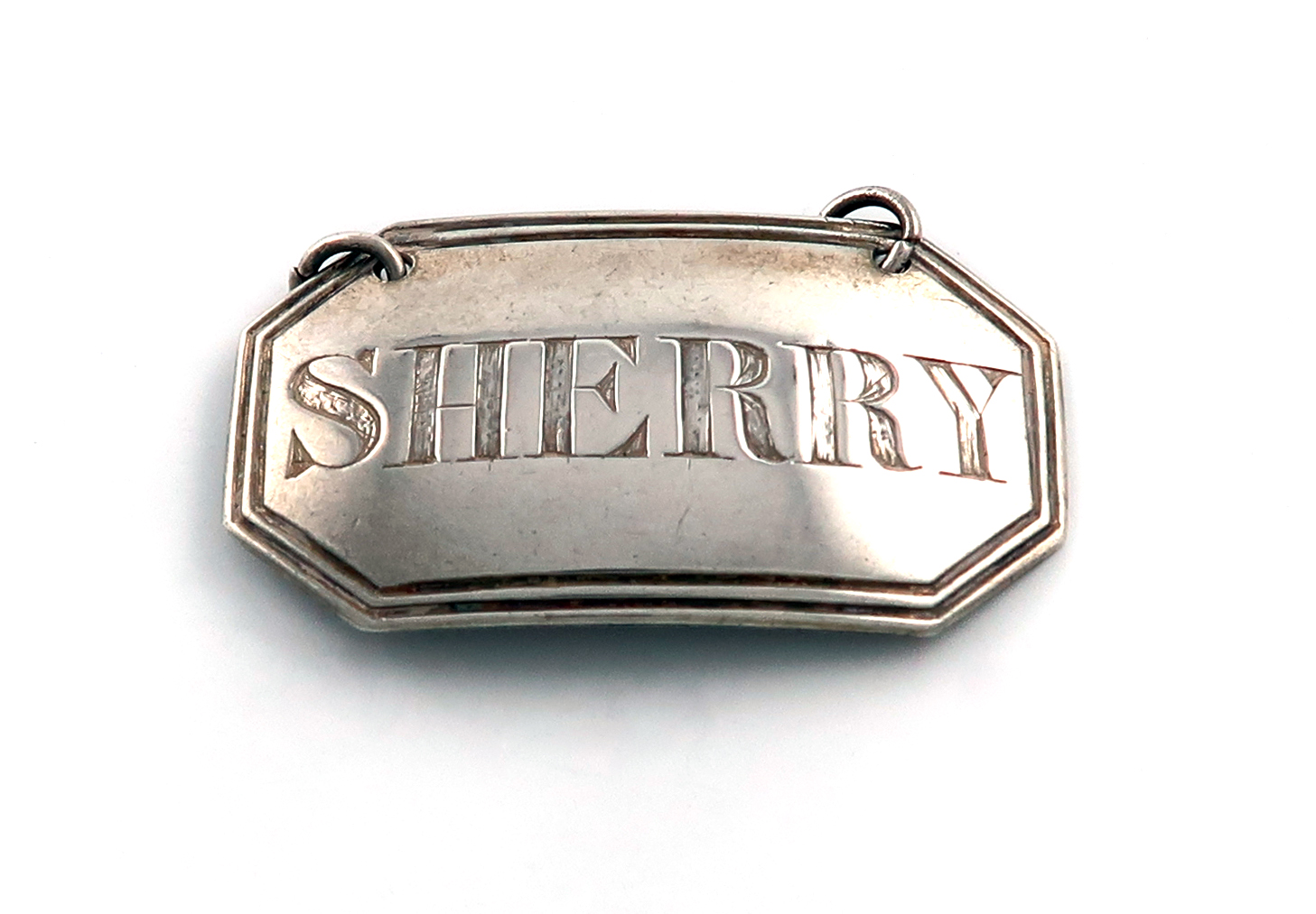 of rectangular form, canted corners with a reeded border, incised 'SHERRY', length 4.5cm, approx. weight 0.3oz.