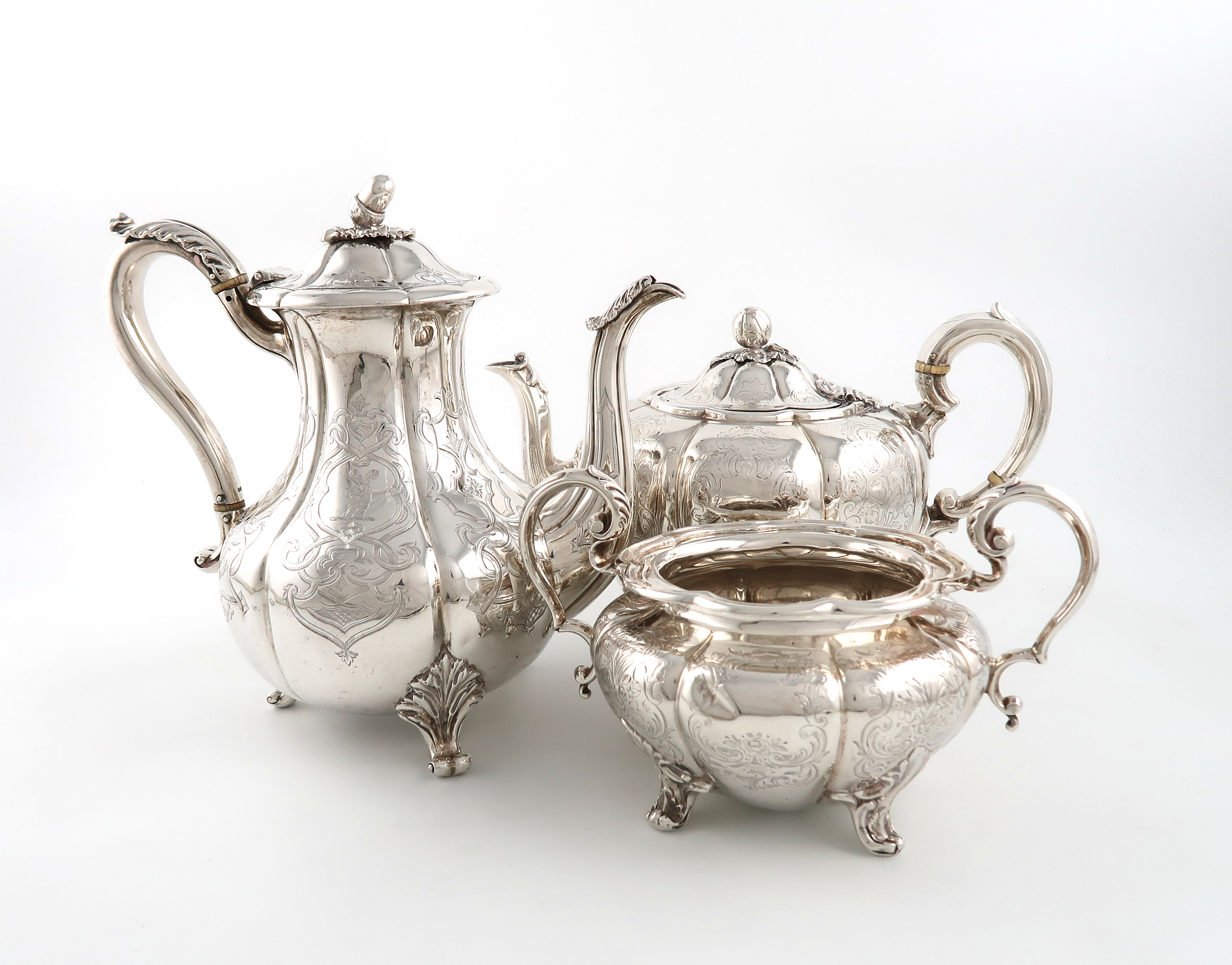 λA Victorian silver coffee pot, teapot and sugar bowl,
