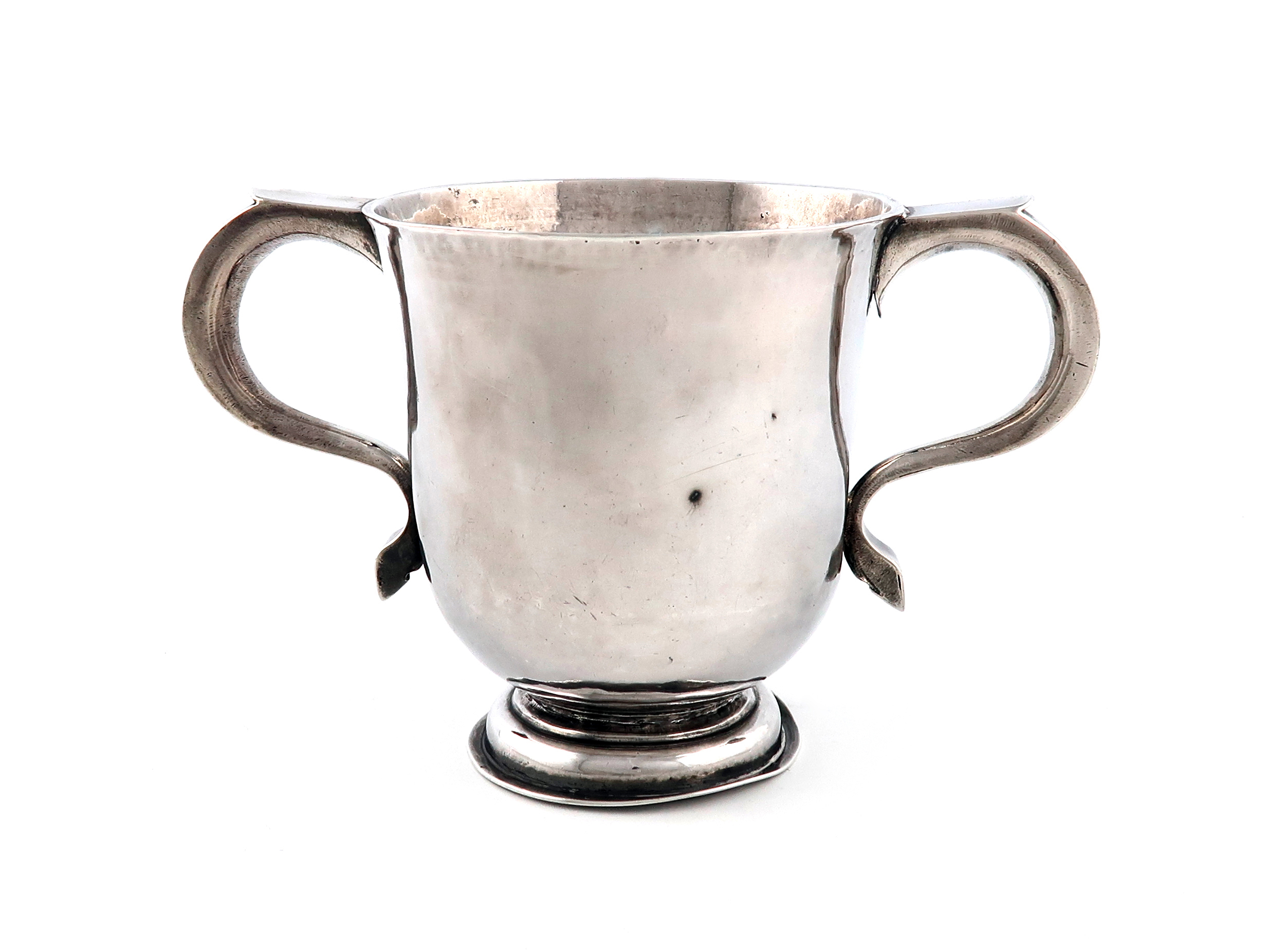 plain circular form, scroll handles, on a raised circular foot, height 13cm, approx. weight 12.5oz.