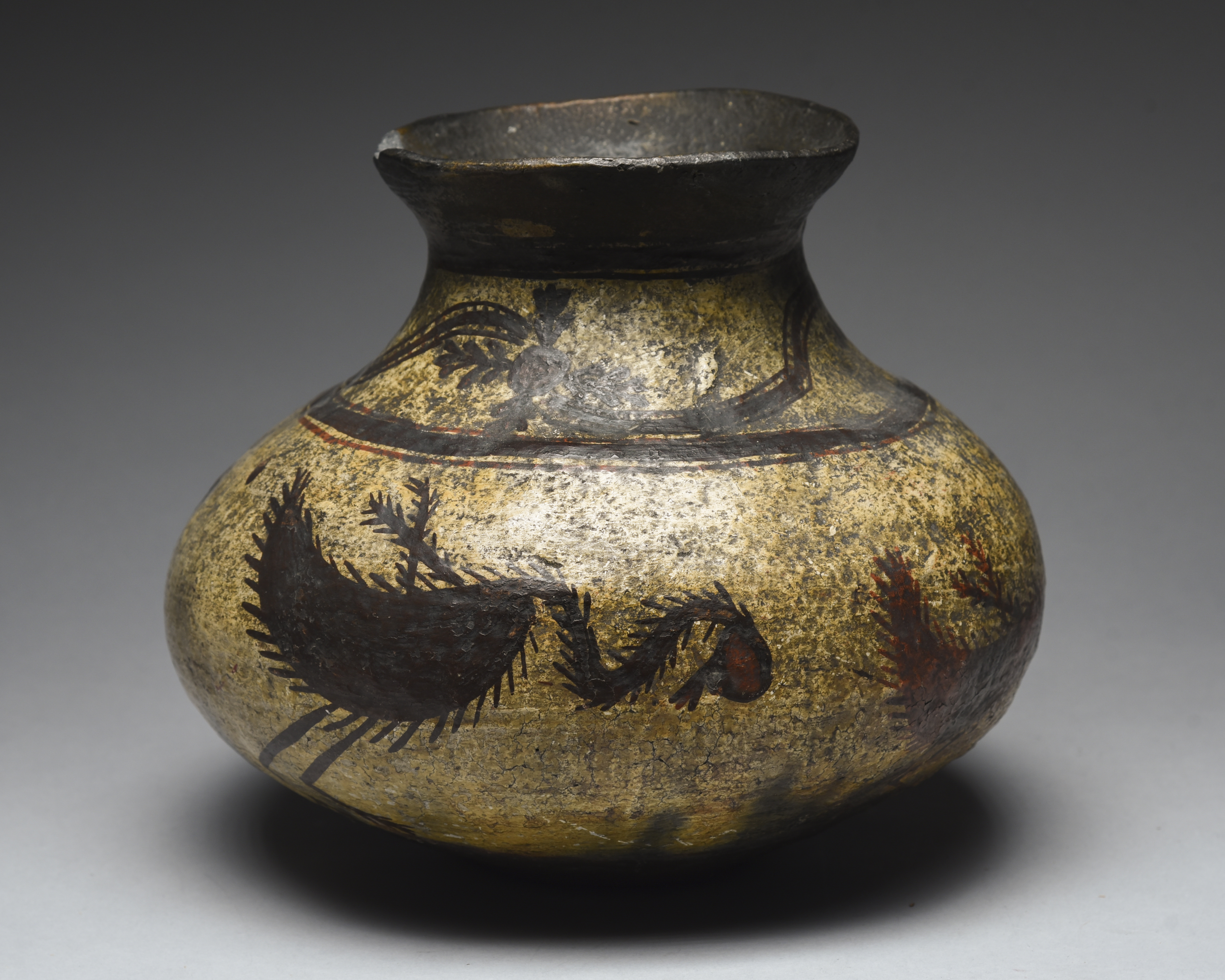 earthenware, painted a band of birds and foliate motifs,
