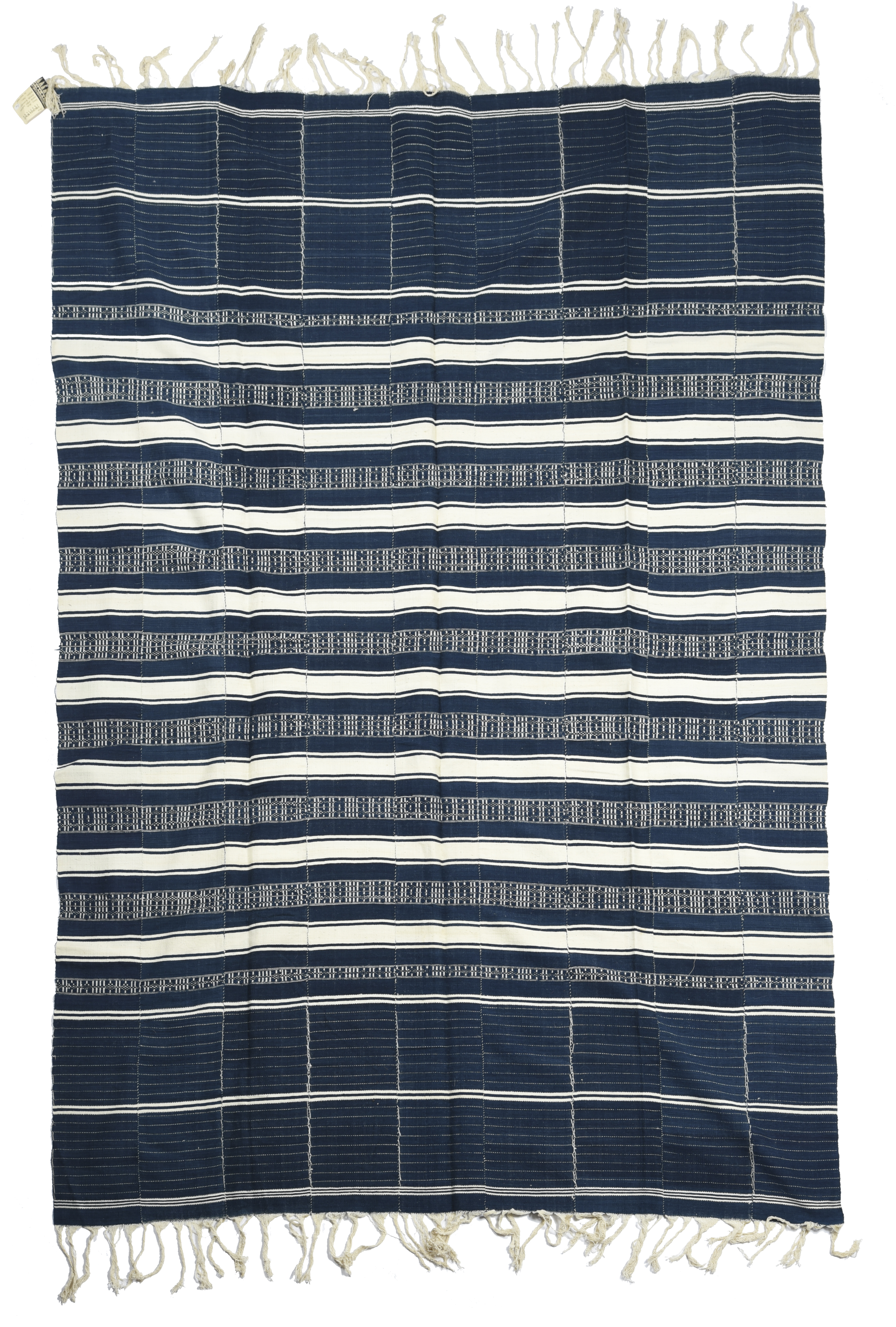 cotton, indigo dyed of nine strips with stripe decoration,