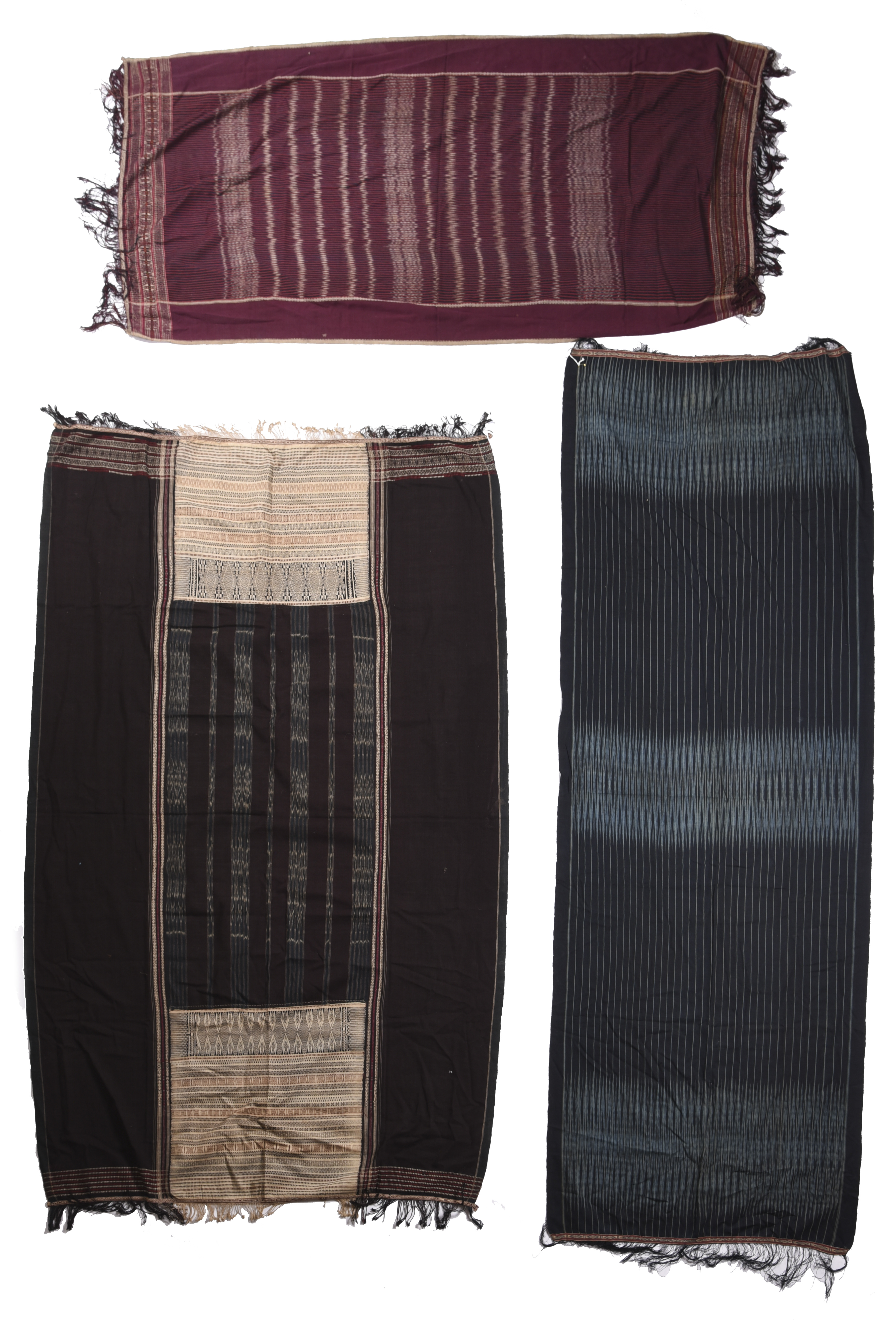 and two Sumatra ikat cloths, one red and blue with a supplementary weft, 175cm x 245cm long. (3)