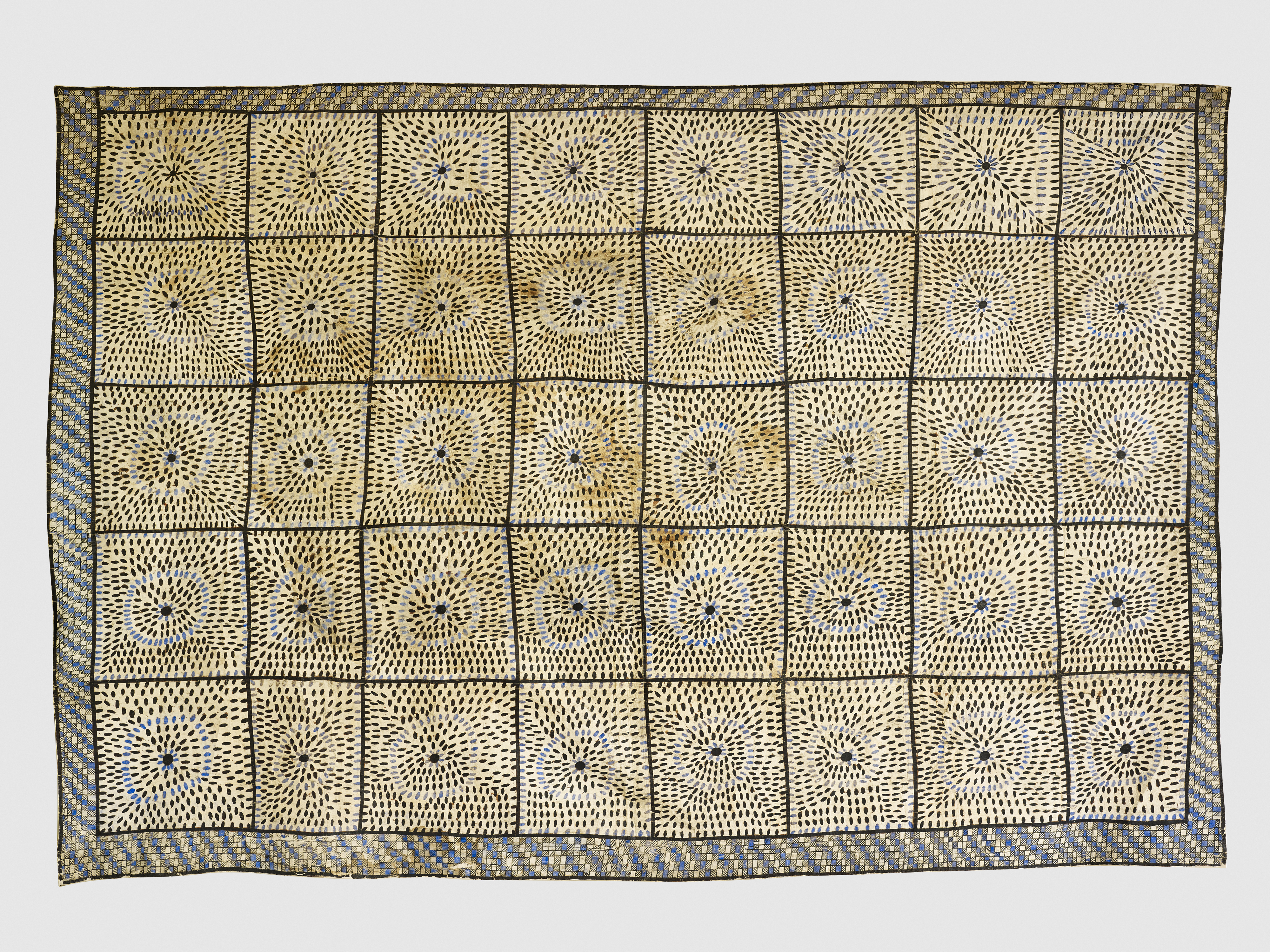 painted forty squares, each with a radiating dash design in blue and black pigment,