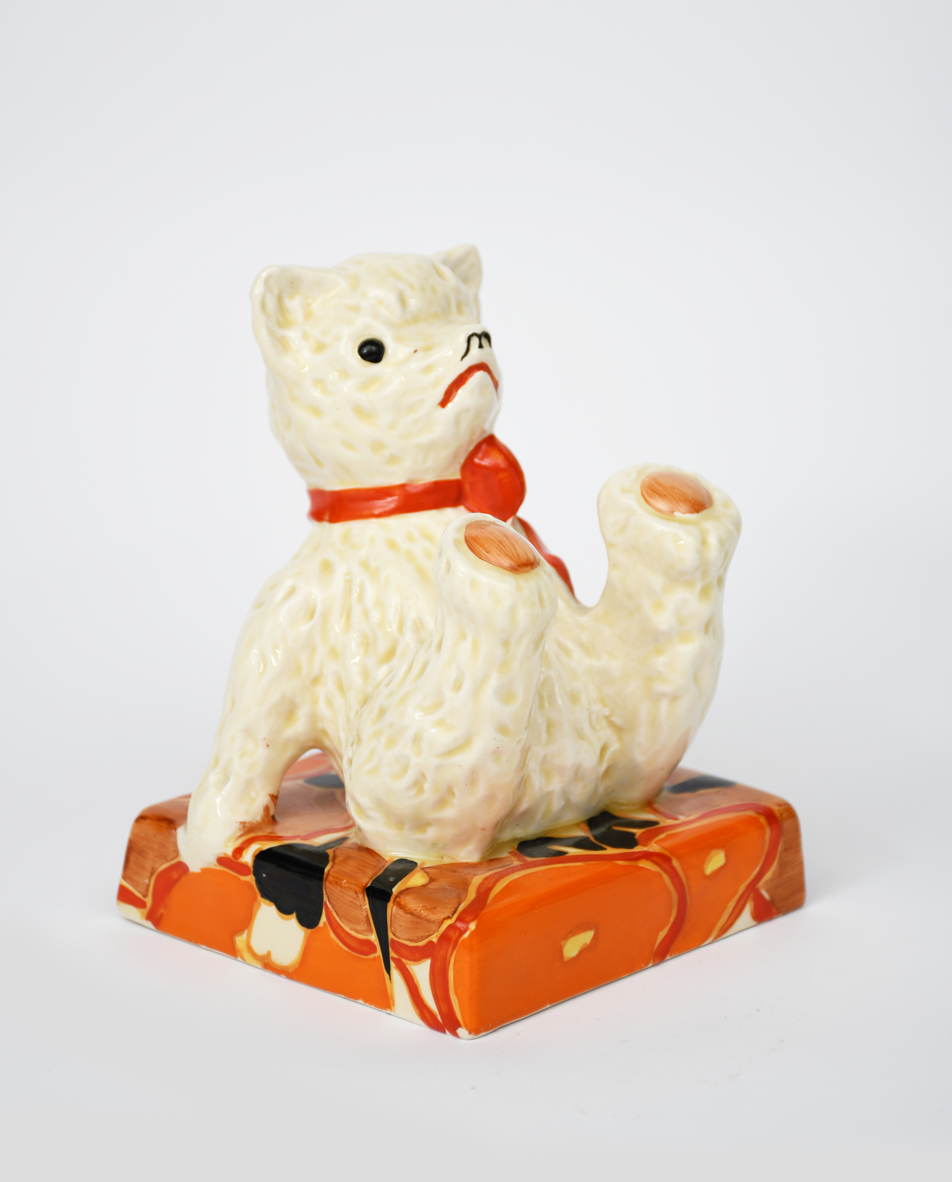 'Orange Chintz' a Clarice Cliff Bizarre Teddy Bear book end, painted in colours printed factory marks, 15cm. high