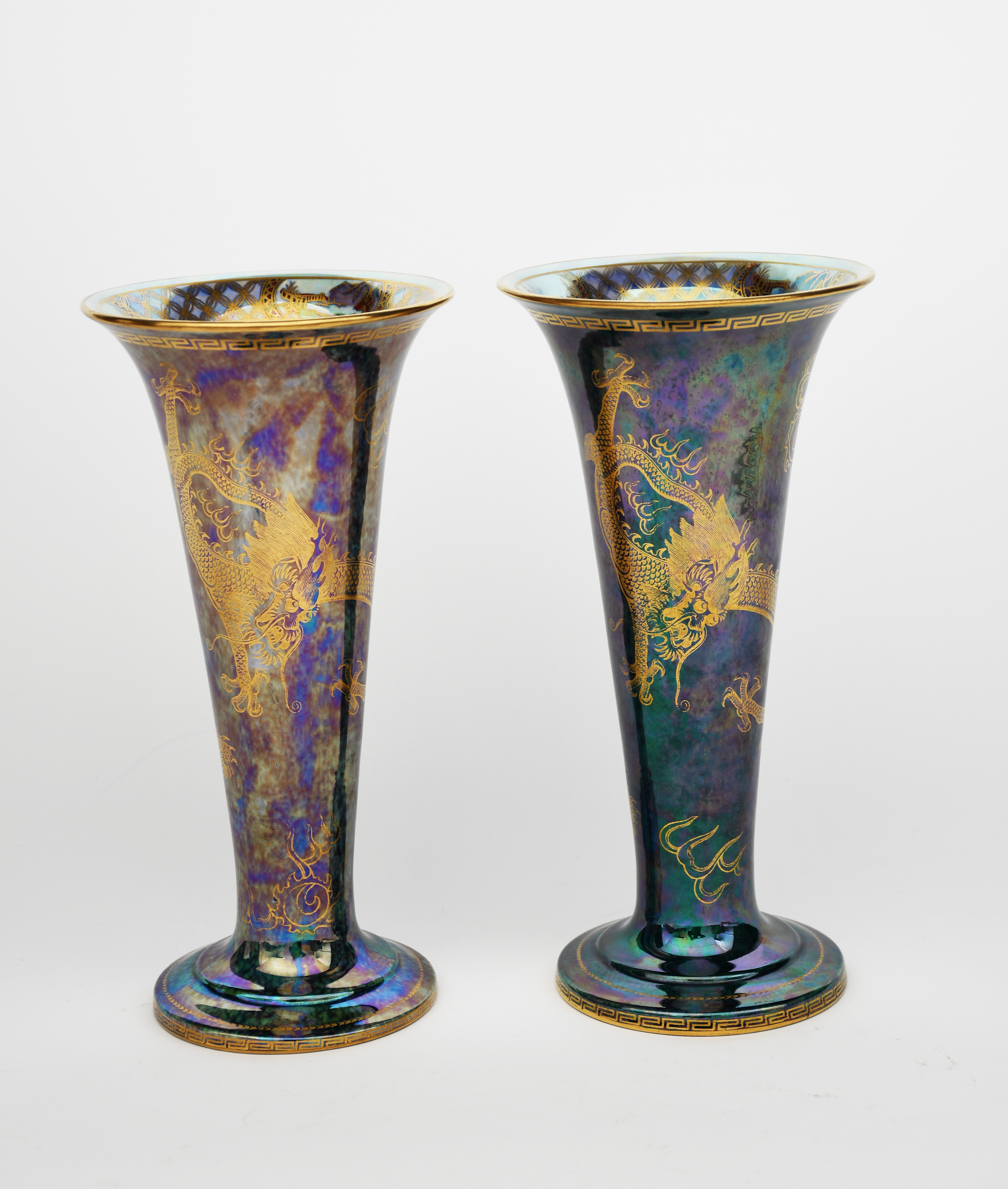A pair of Wedgwood Pottery Dragon lustre vases...