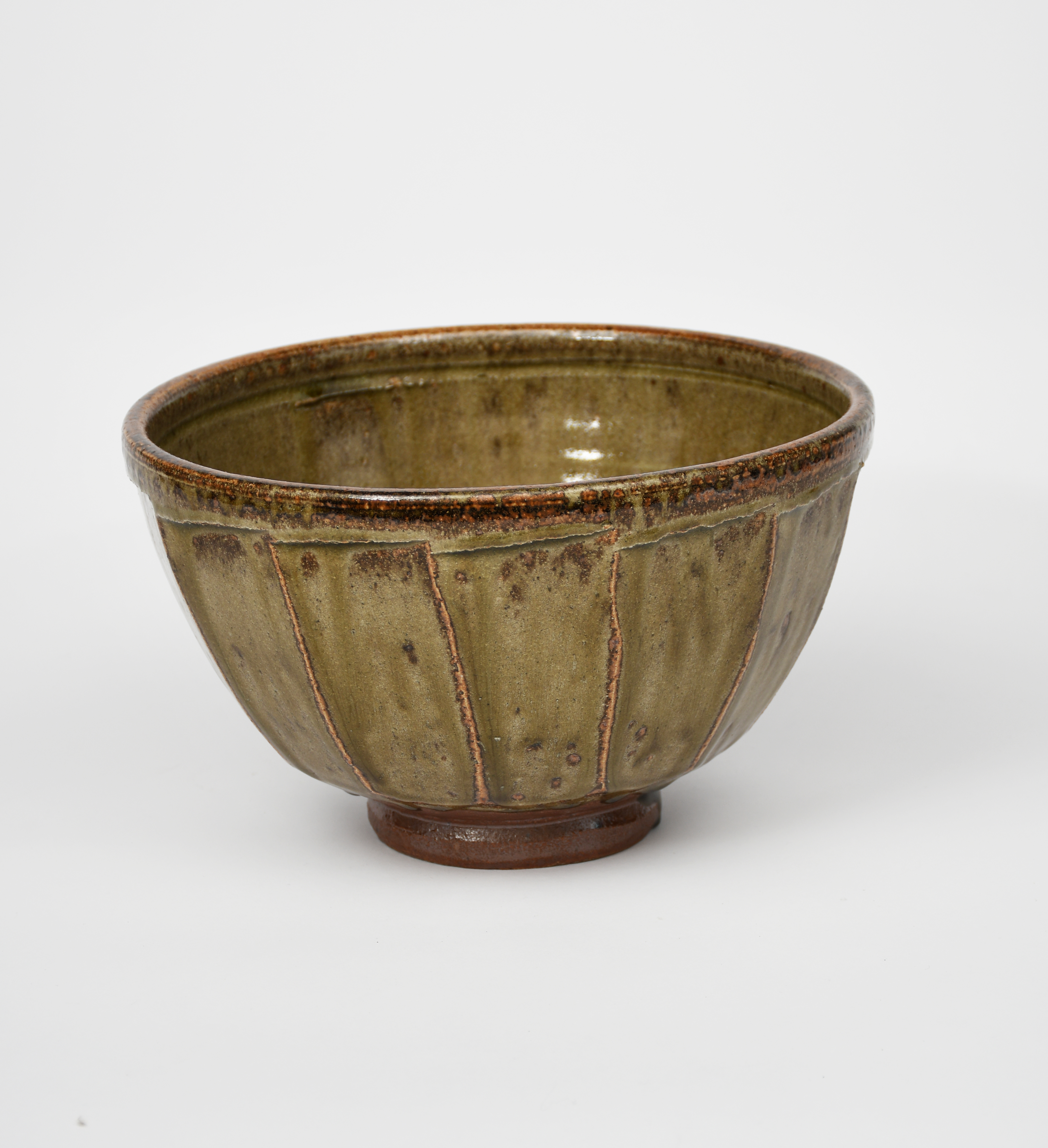 a cut-sided stoneware bowl, covered in an ash glaze,