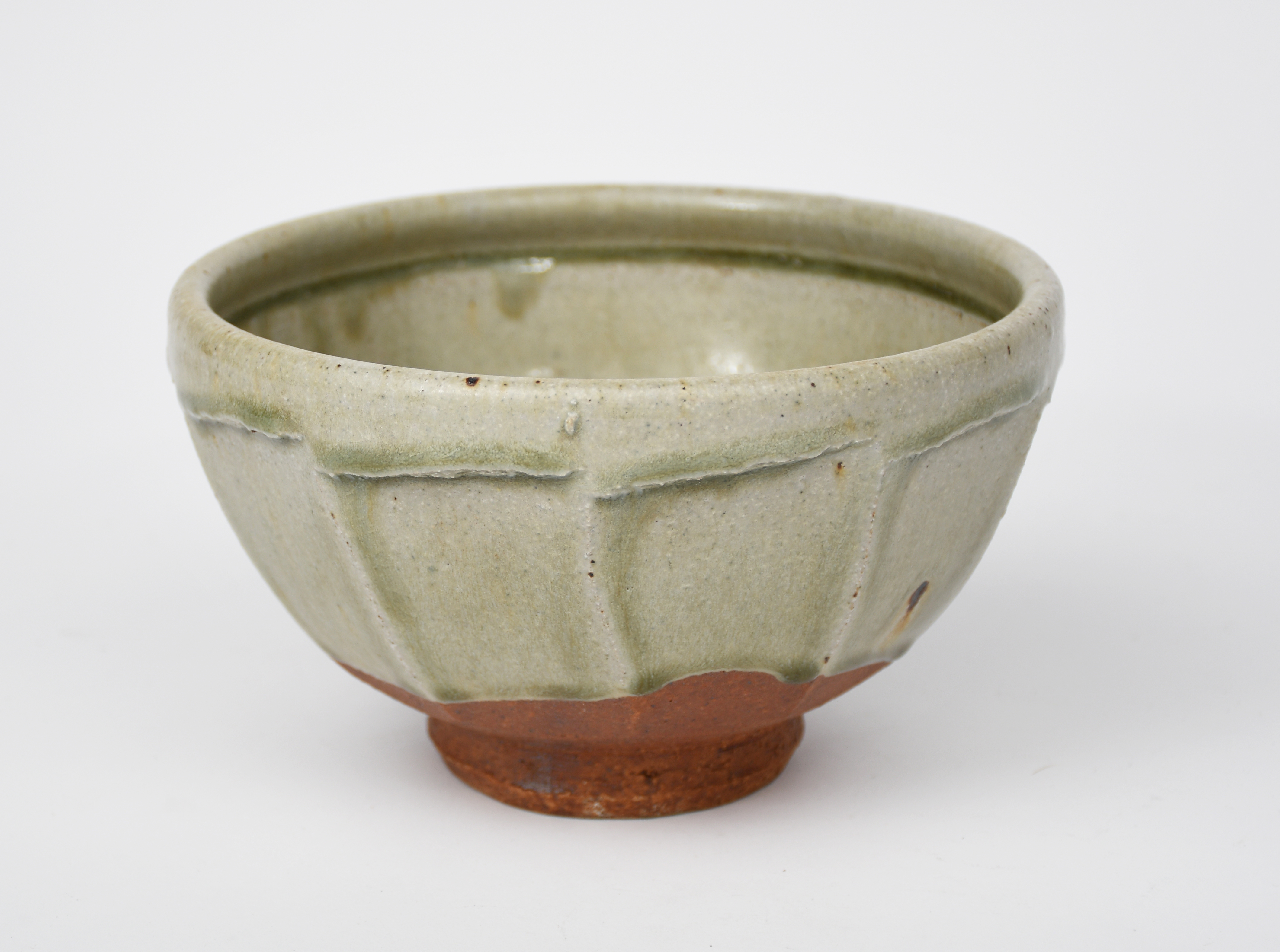 a cut-sided stoneware bowl, covered to the foot with an ash glaze,