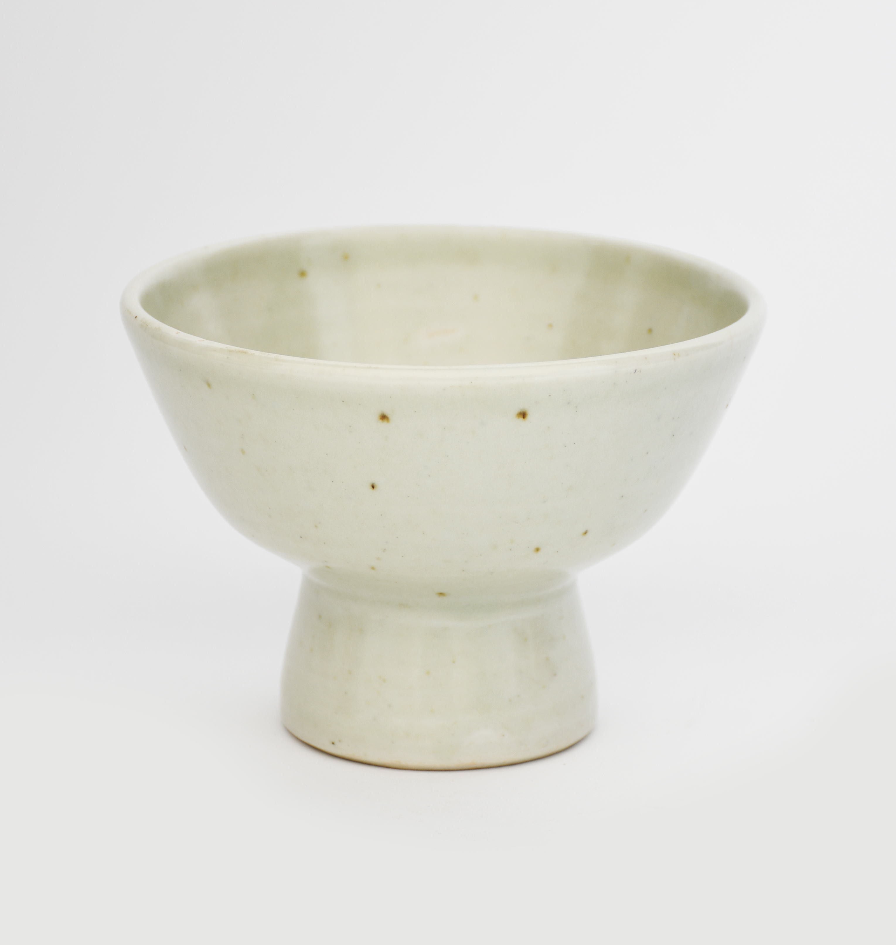 a footed porcelain bowl, covered in a pale celadon glaze,
