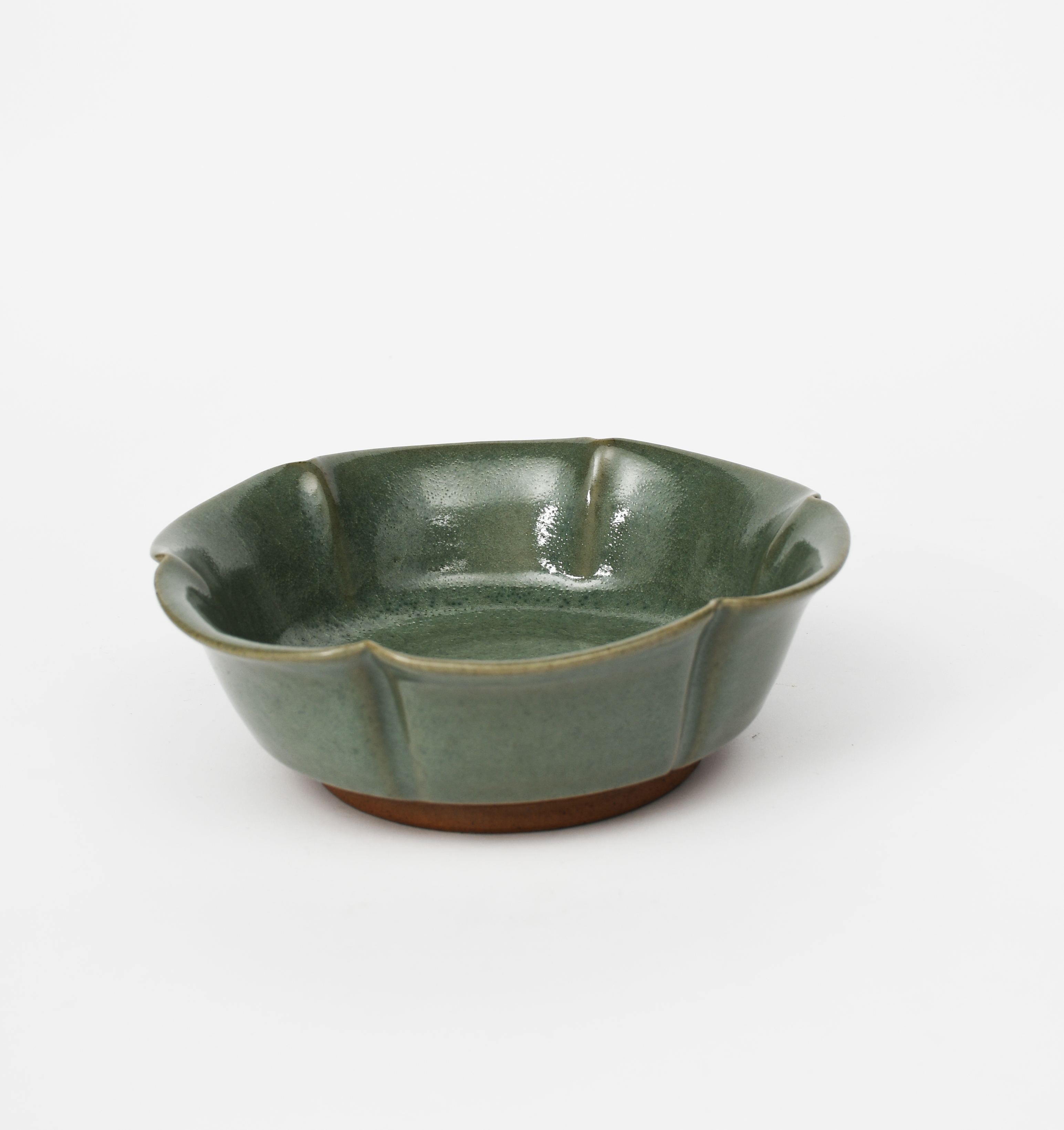 a stoneware lotus flower bowl, dated 1939, covered in a green celadon glaze