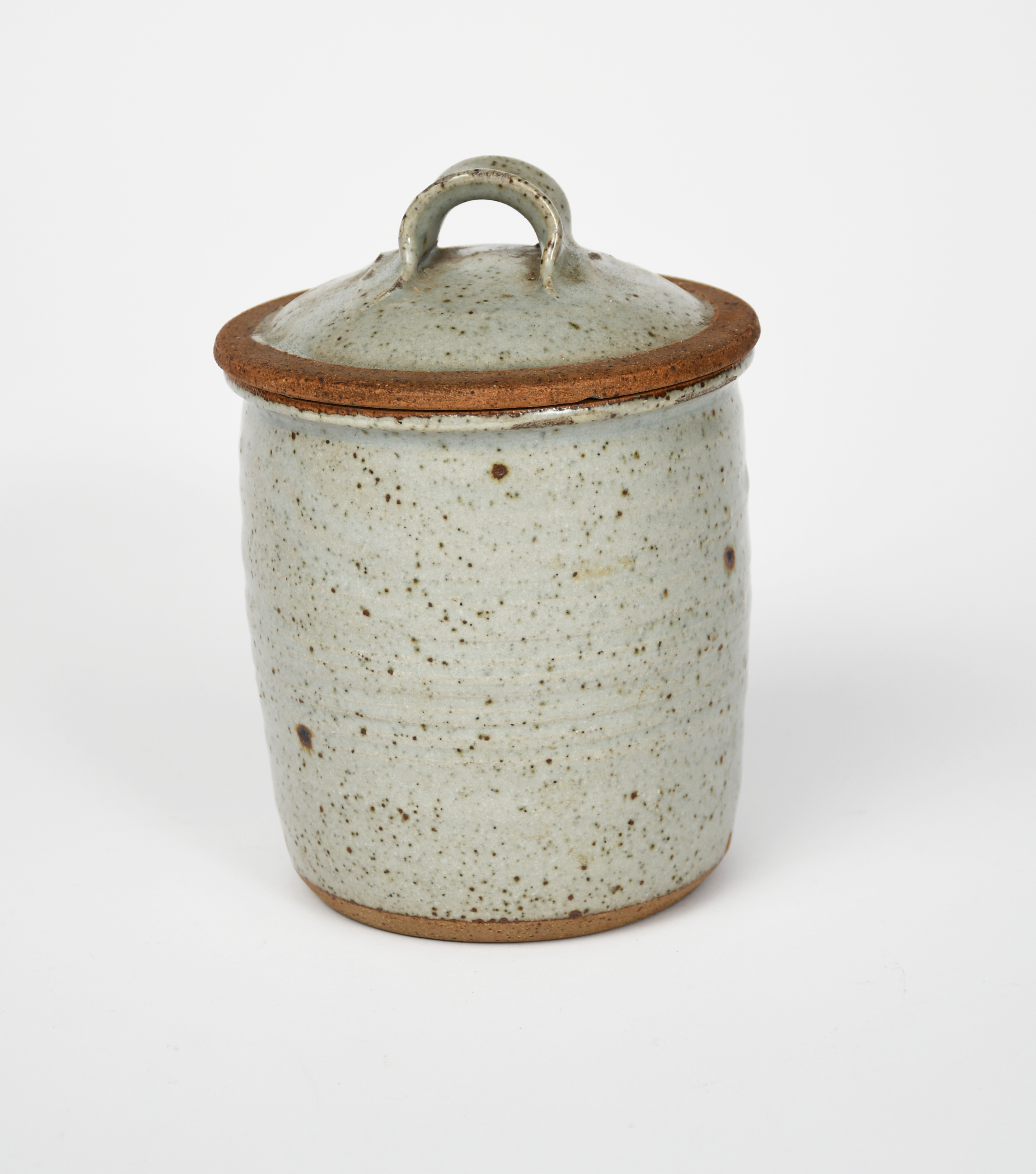 an early stoneware sugar jar and cover, speckled blue-grey ash glaze