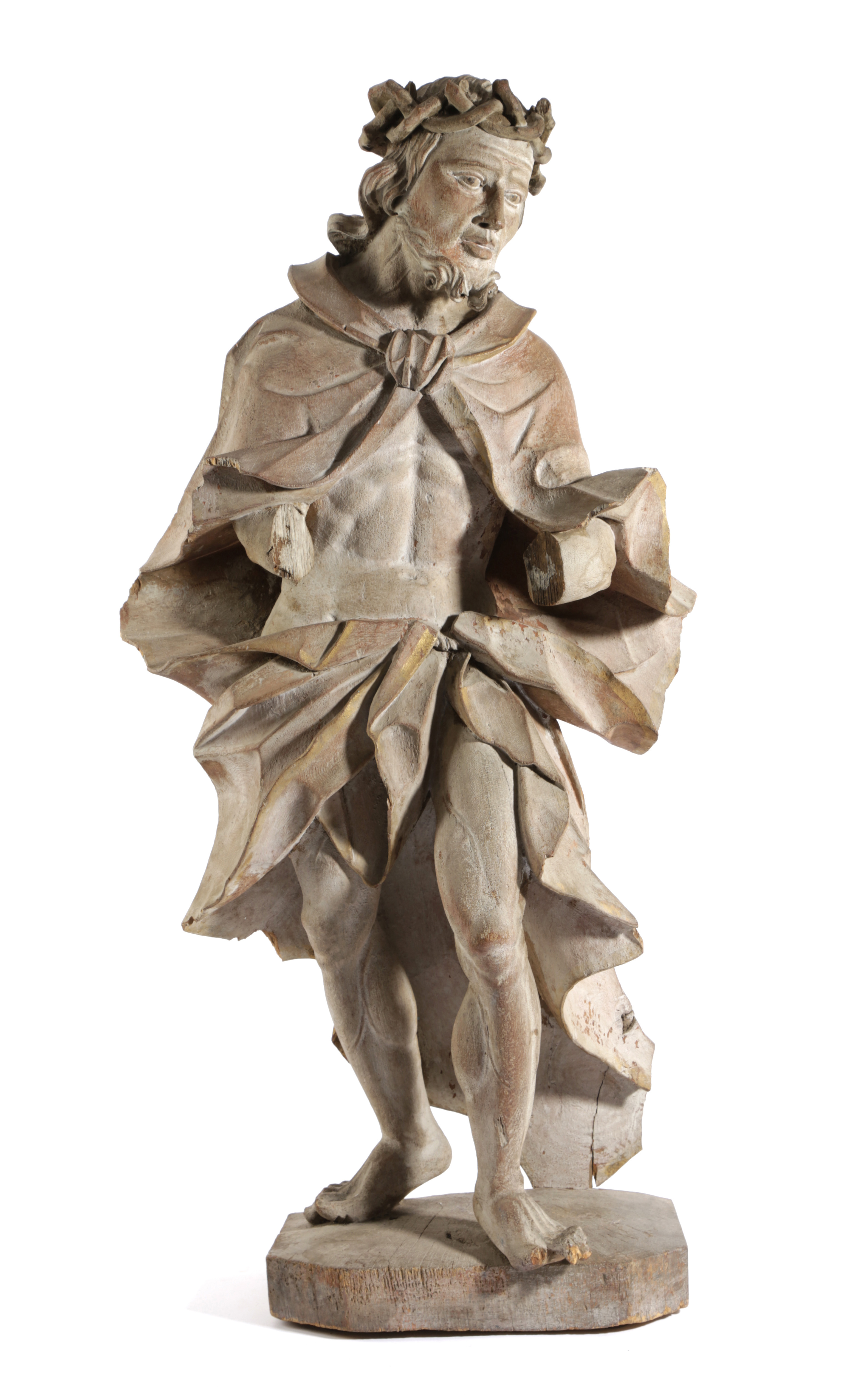 AN ITALIAN LIMED PAINTED AND GILT FIGURE OF CHRIST