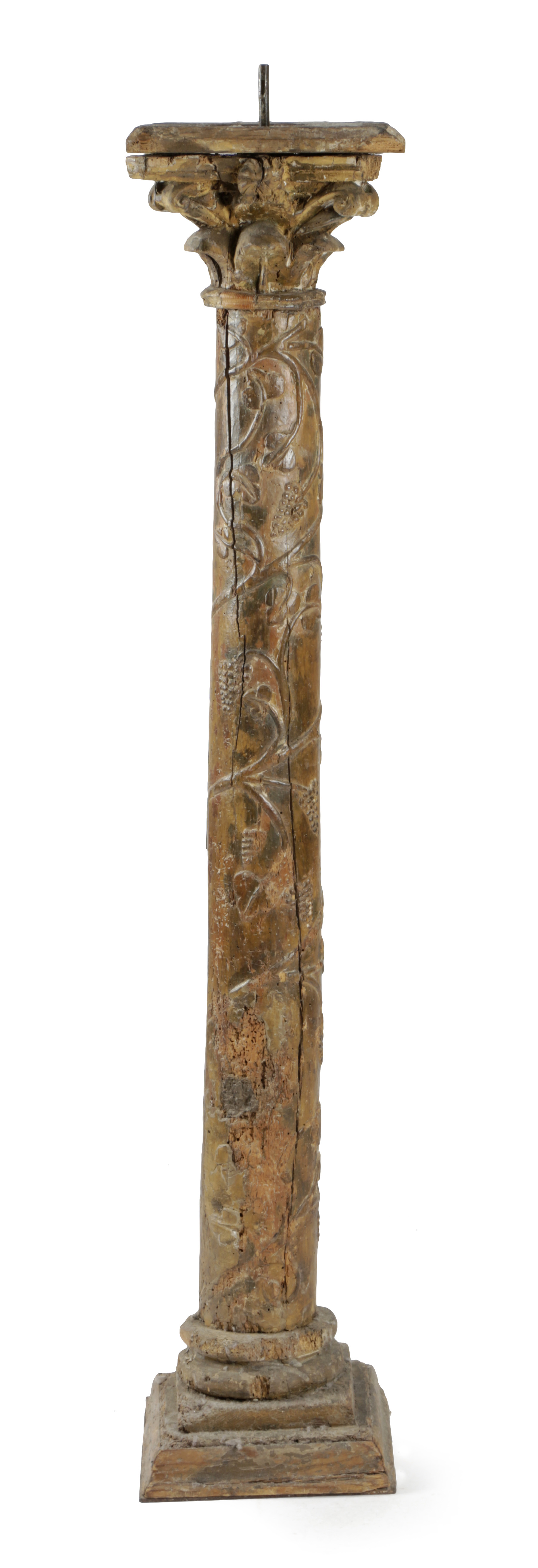 A BAROQUE PINE CANDLESTAND ITALIAN OR SPANISH