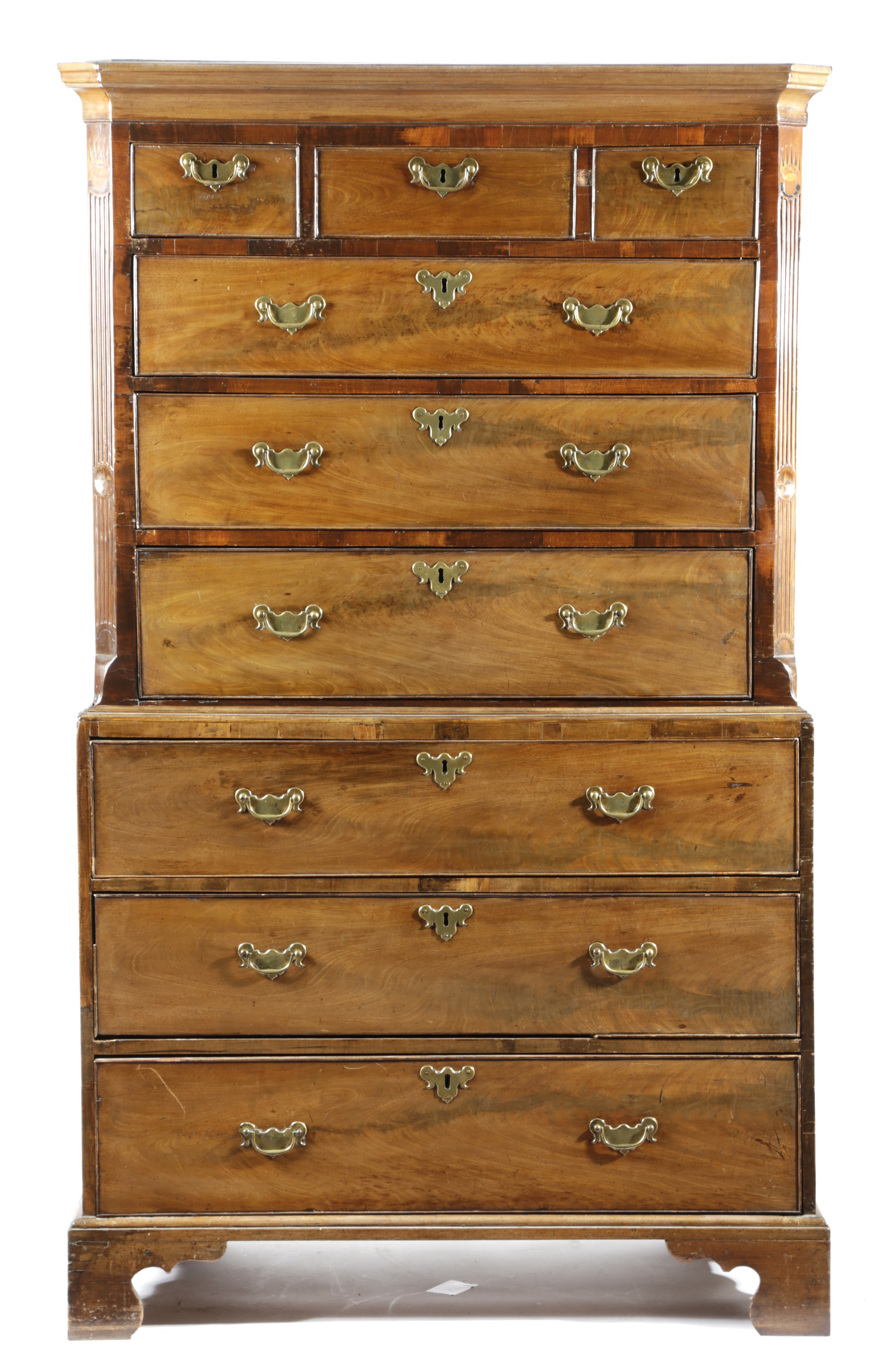 A GEORGE III MAHOGANY CHEST ON CHEST