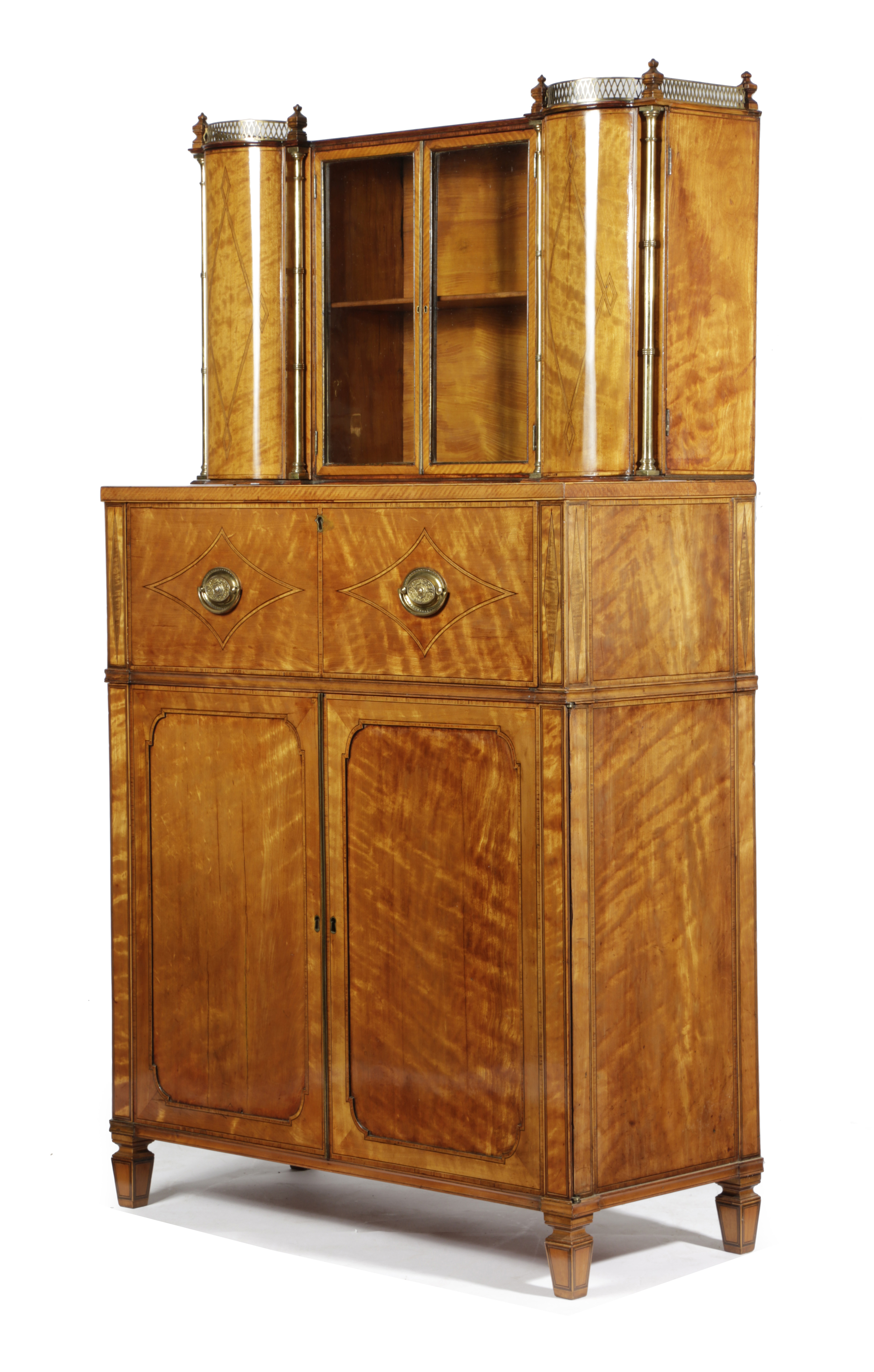 λ A GEORGE III SATINWOOD SECRETAIRE SIDE CABINET ...