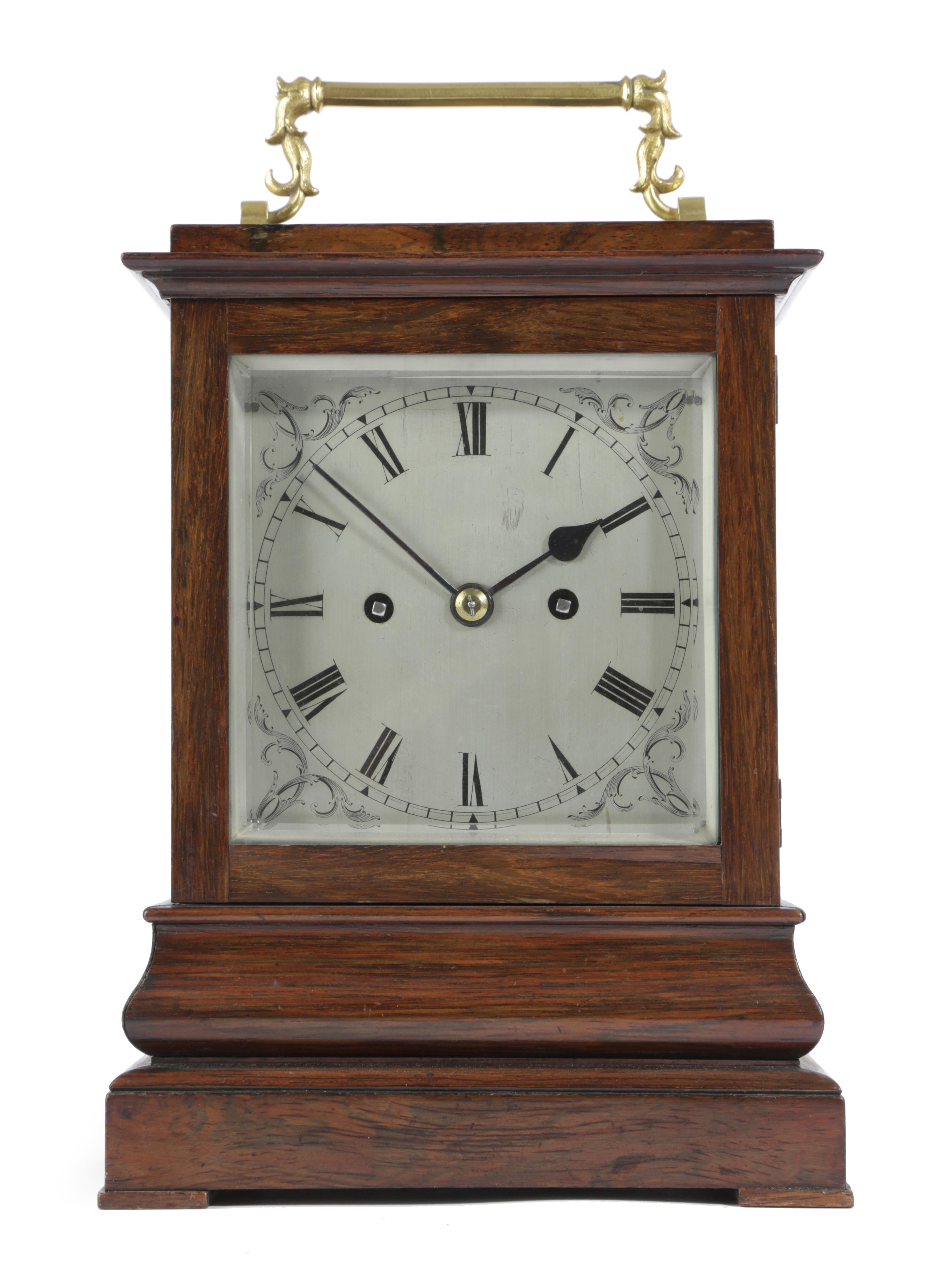 λ A WILLIAM IV ROSEWOOD MANTEL OR TRAVEL CLOCK