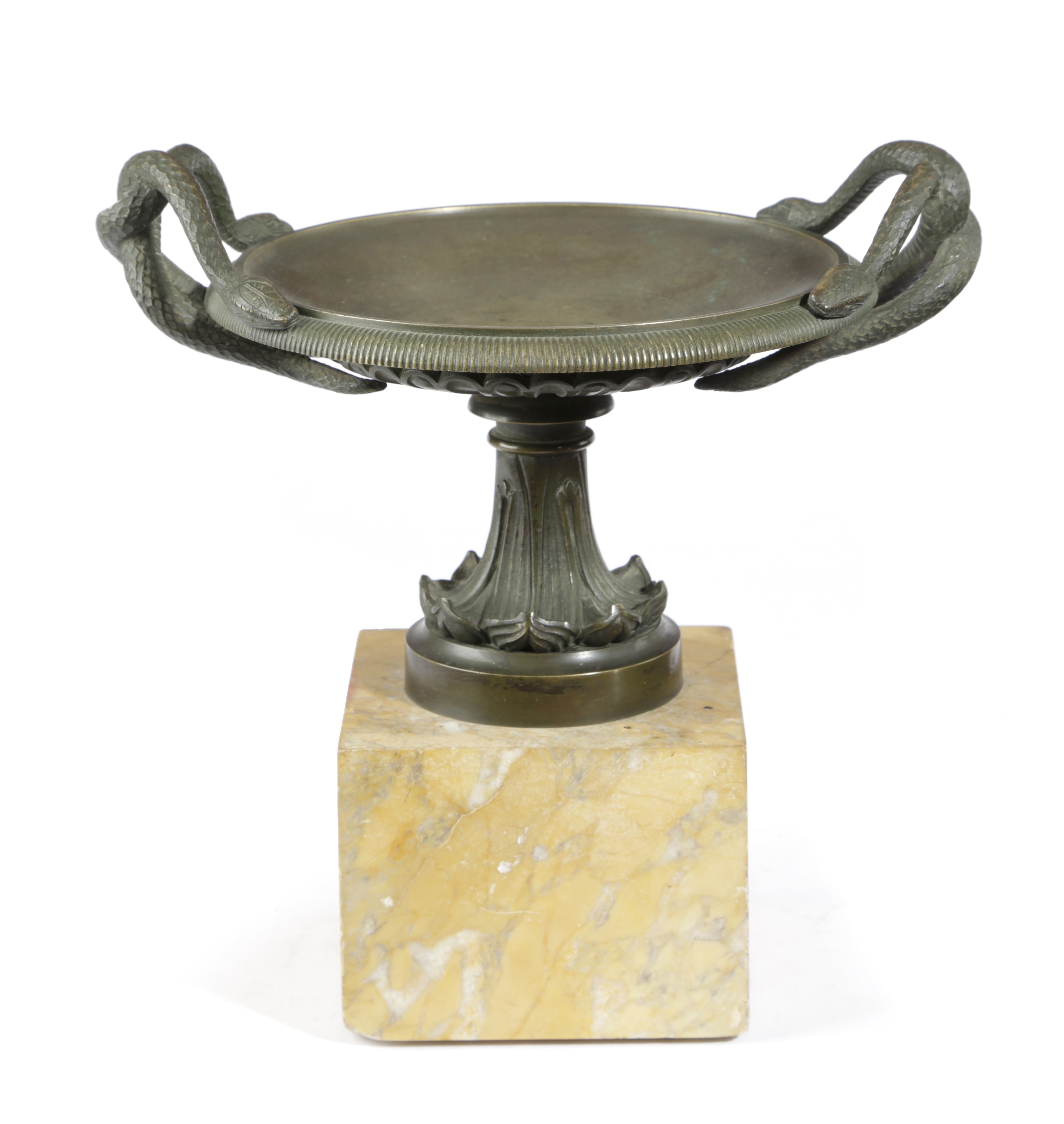 with a pair of entwined serpent handles on a veneered giallo antico marble plinth