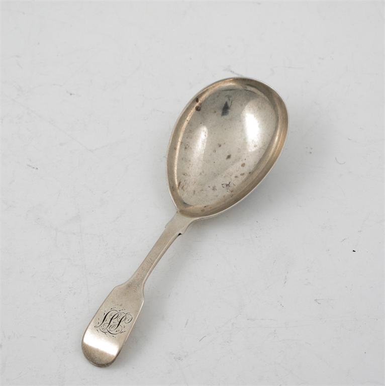 A Victorian fiddle pattern caddy spoon