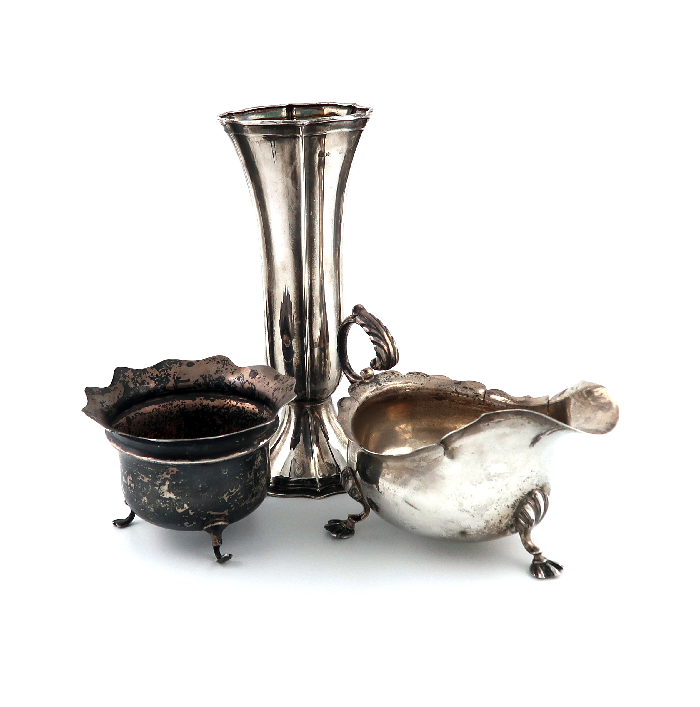 comprising: a sauce boat, Birmingham 1911, a tapering vase and a circular sugar bowl, approx. weight 12.5oz. (3)