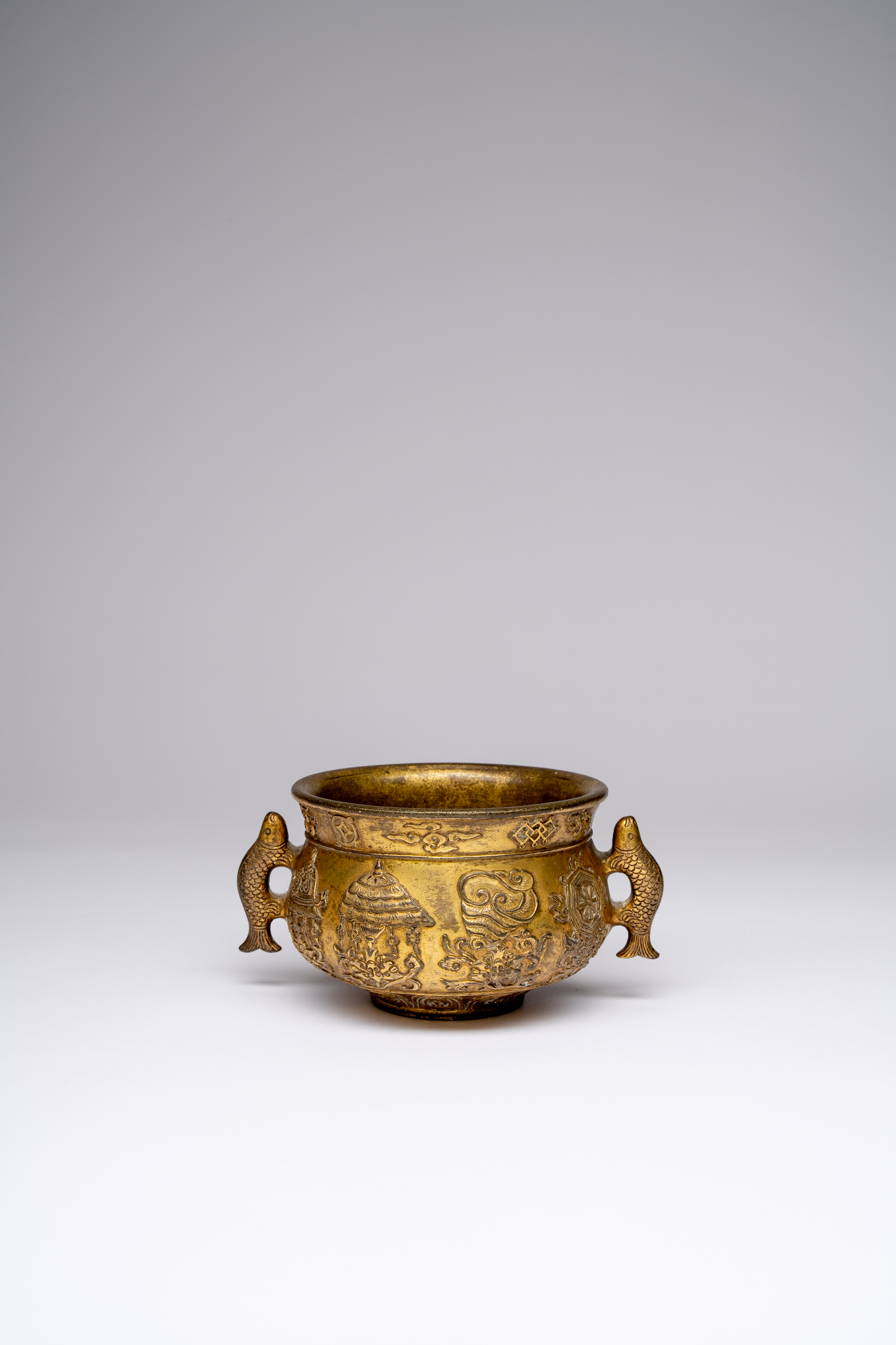 清十七/十八世紀 銅鎏金八吉祥紋魚耳爐