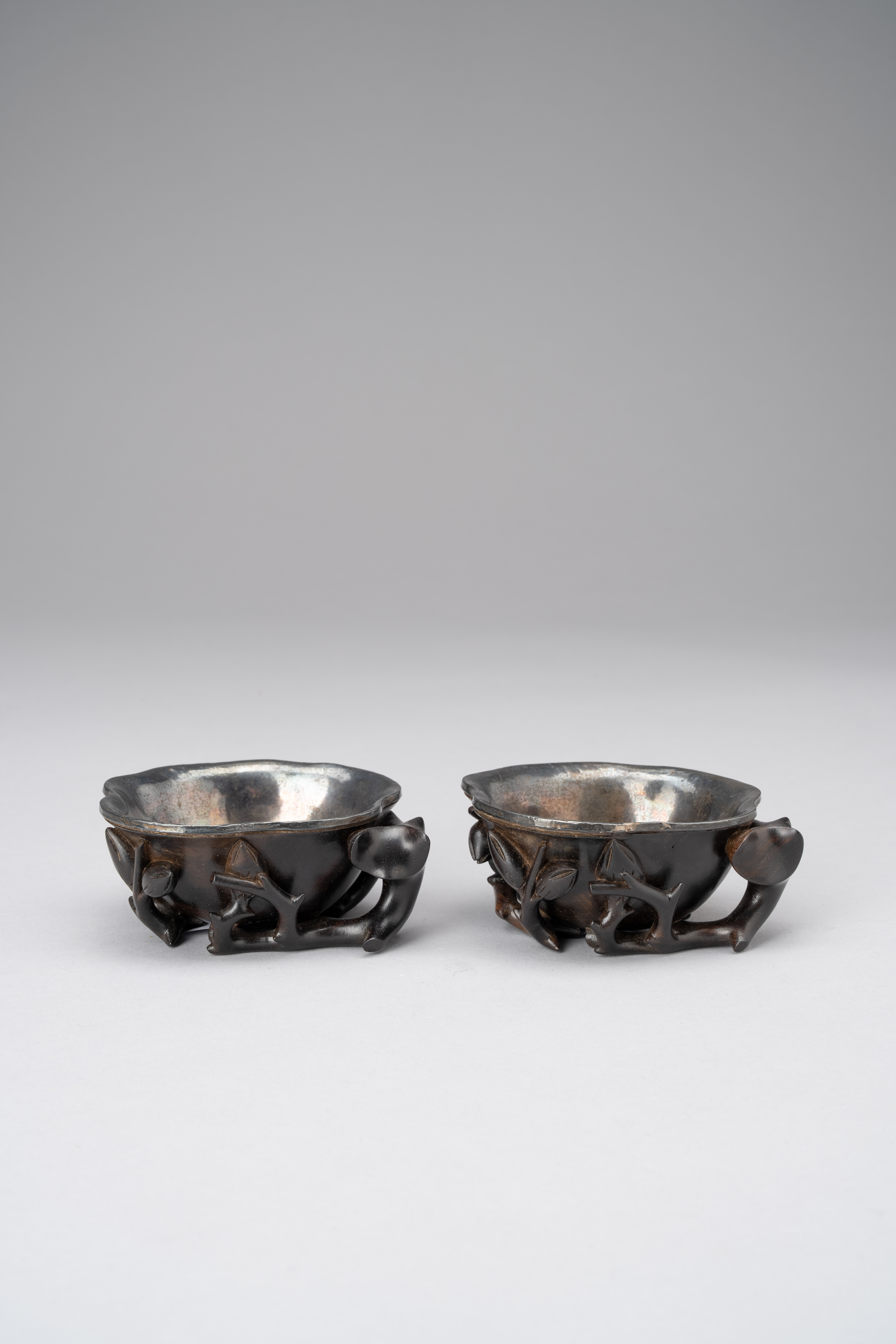 A PAIR OF CHINESE ZITAN 'MAGNOLIA' CUPS