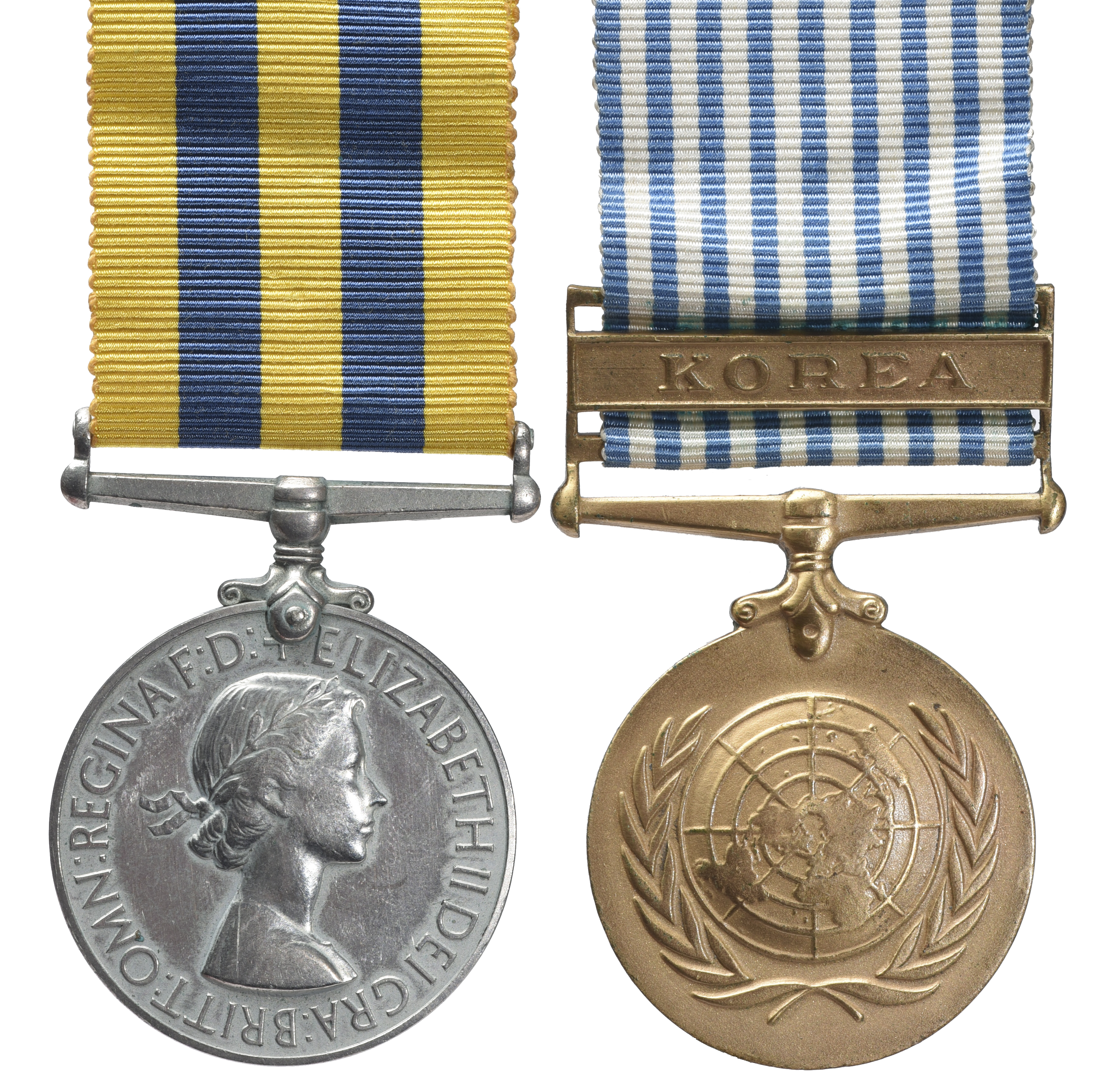 Two medals to Private R. Bellamy, King's Own Scottish Borderers: Korea 1950-53, first type (22274823 PTE. R. BELLAMY. K.O.S.B.), near very fine; United Nations Korea 1950-54, unnamed as issued, near very fine. [2]