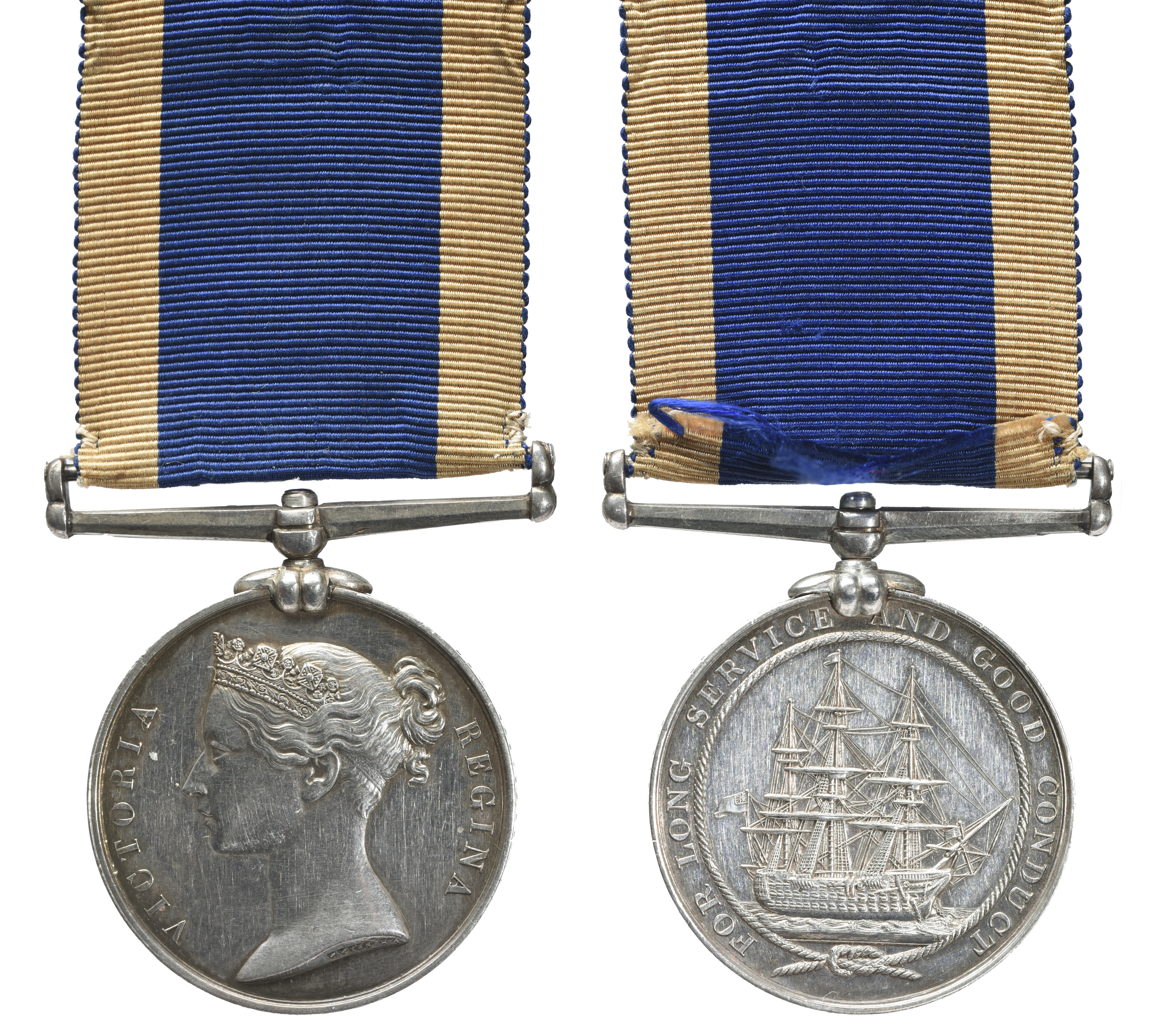 Henry Durham was born in London 18/05/1828. He signed on as Boy 2nd Class in H.M.S. Eagle 02/09/1844, and served thereafter in H.M.S.s Caledonia and Vengeance. He engaged for ten years continuous service in Vengeance 25/07/1853 and served in the Crimean War in this ship (entitled to a no-clasp Crimea Medal. He entered a further continuous service engagement in H.M.S. Racer 29/06/1864, subsequently serving in H.M.S.s Otter, Archer, Flying Fish and Osprey