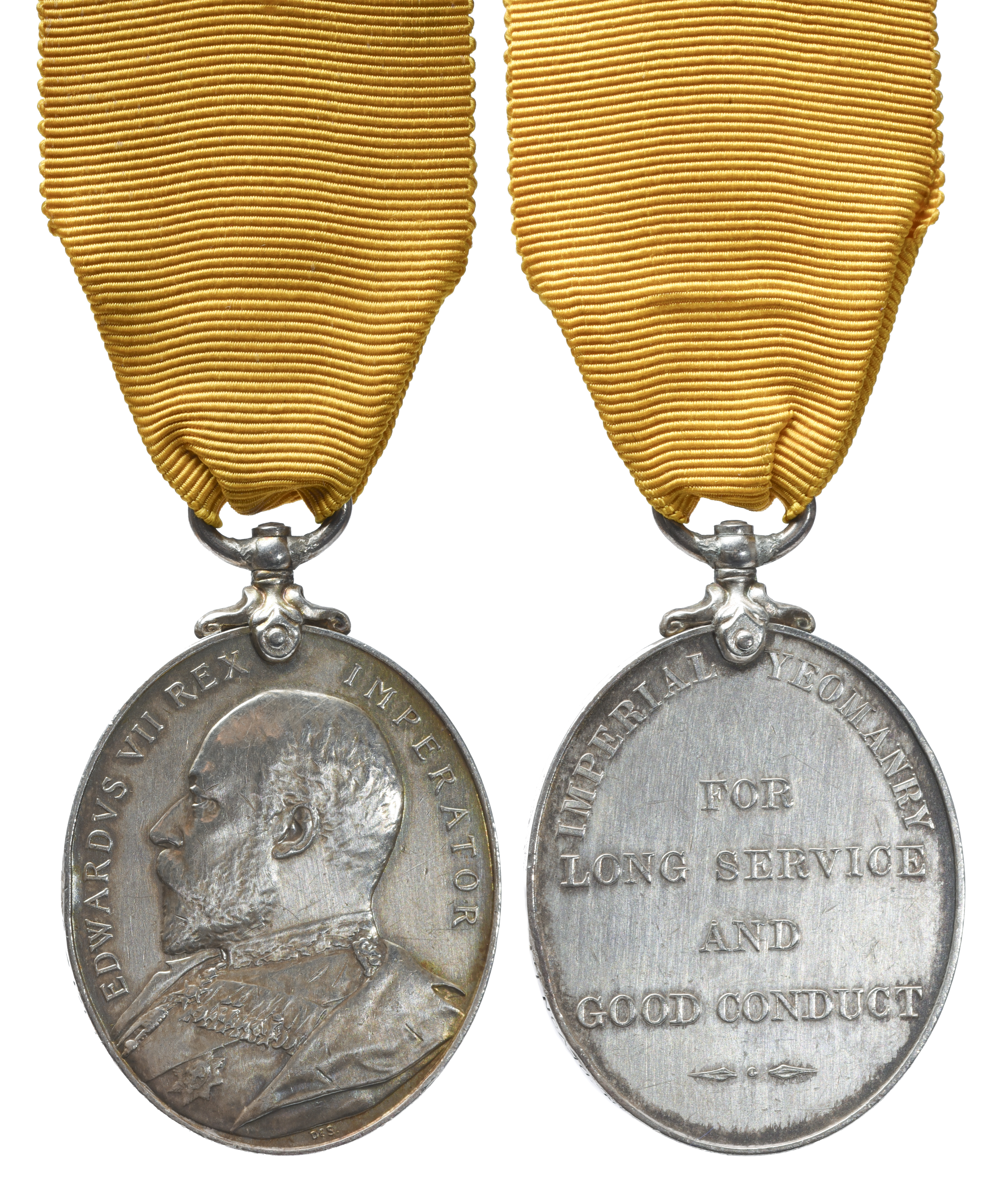 An Imperial Yeomanry Long Service and Good Conduct Medal to Bandsman C. Fewings, Royal North Devon Imperial Yeomanry, (171 BNDSMN: C. FEWINGS. R.N. DEVON I.Y.), edge bruising, otherwise good very fine.