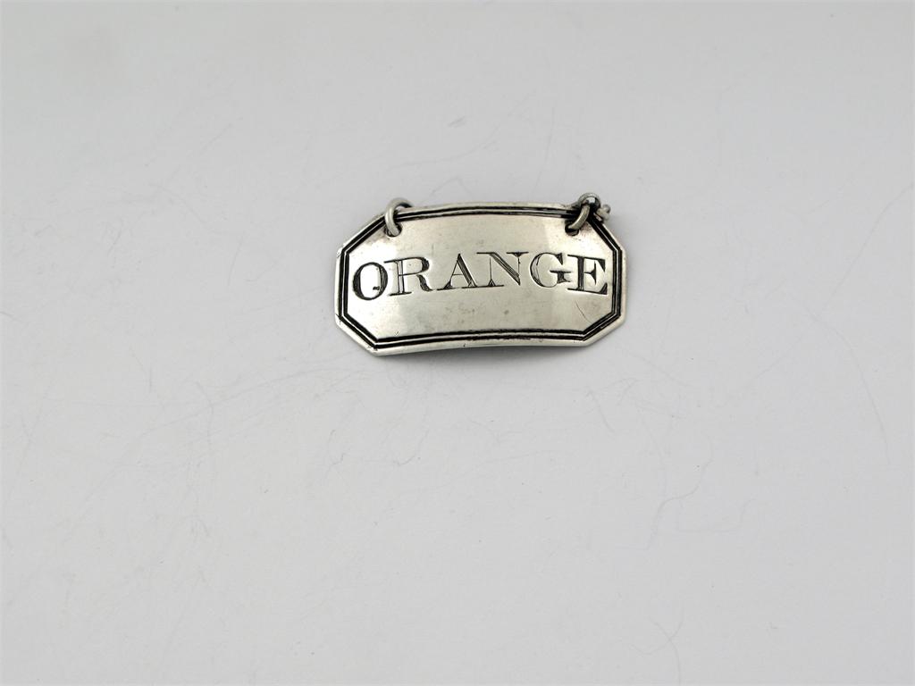 A George III oblong label, reeded border, incised 'ORANGE' by Wm. Bennett, Birmingham 1796.