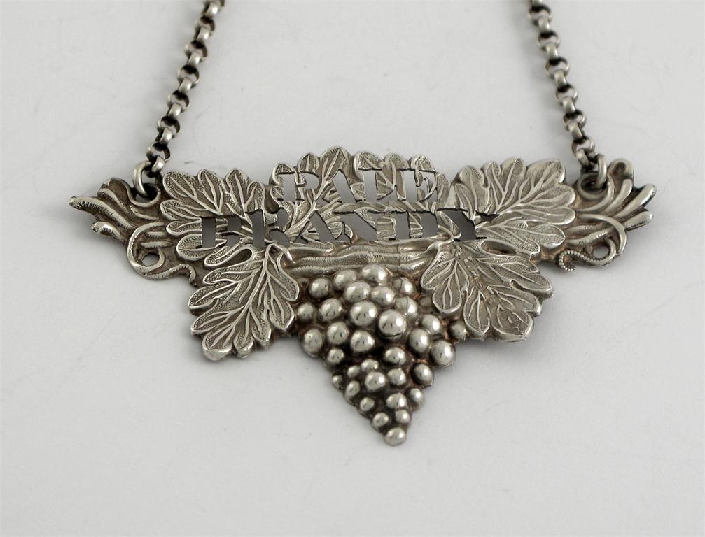 A Victorian fruiting vine leaf label, pierced 'PALE SHERRY', by George Unite, Birmingham 1856, 2.5in (6.4cm), long.