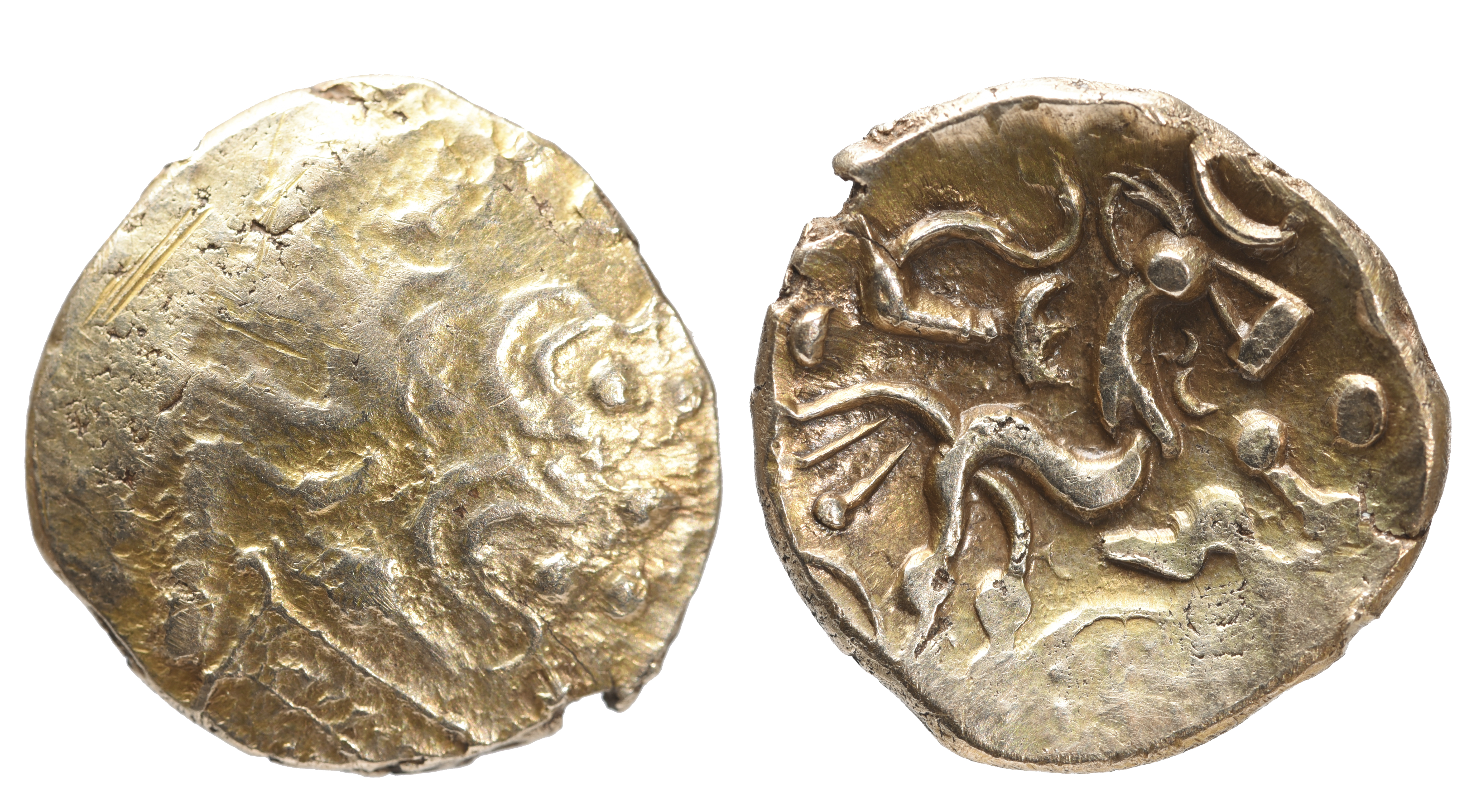 British Celtic coinage: gold stater, possibly Atrebates, devolved Apollo head, rev. disjointed head, 4.83g, good fine or better.