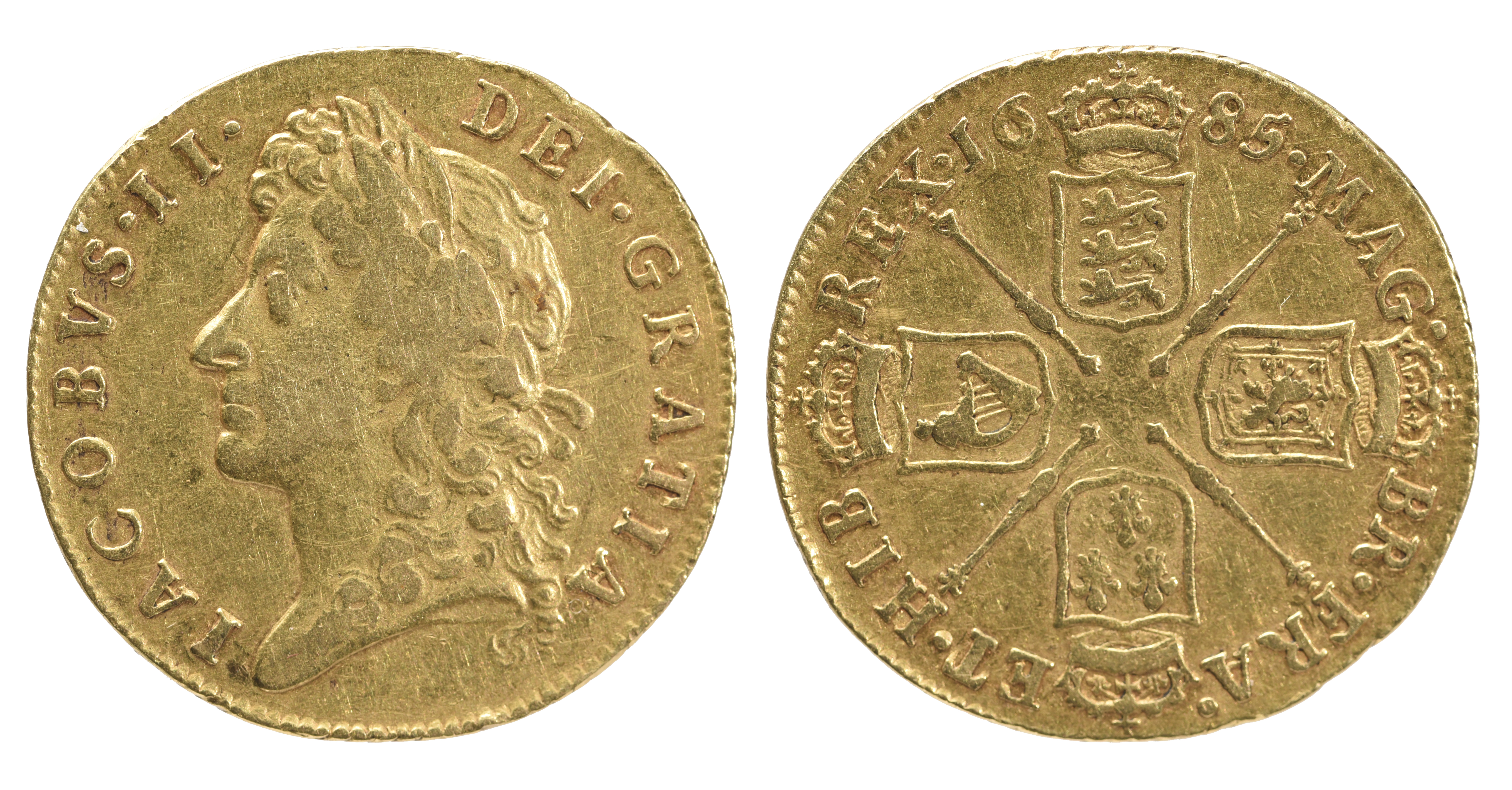 James II, gold guinea, 1685, first bust (S 3400), near very fine.