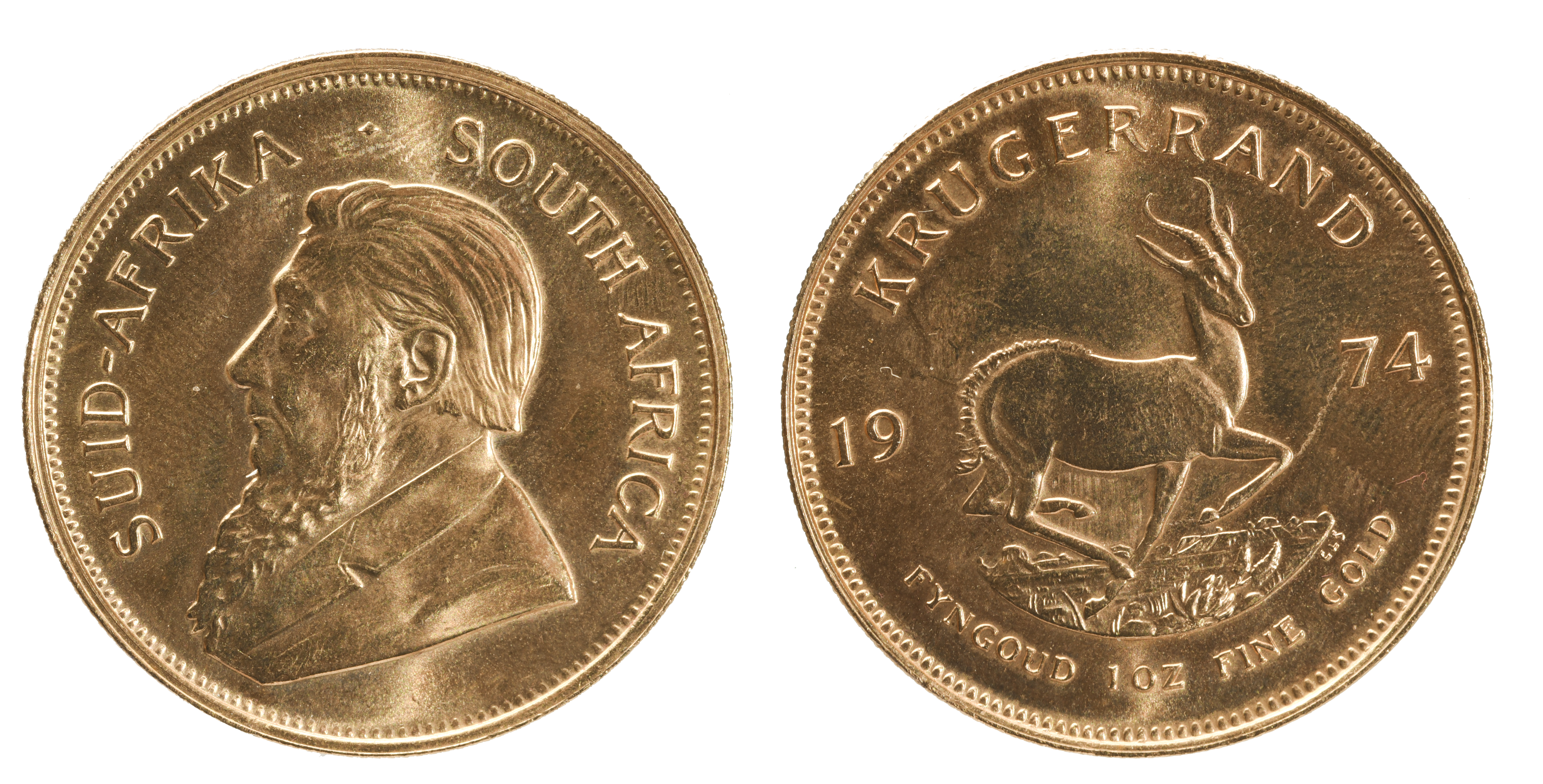 South Africa: gold krugerrand, 1974 (KM 73), extremely fine or nearly so.