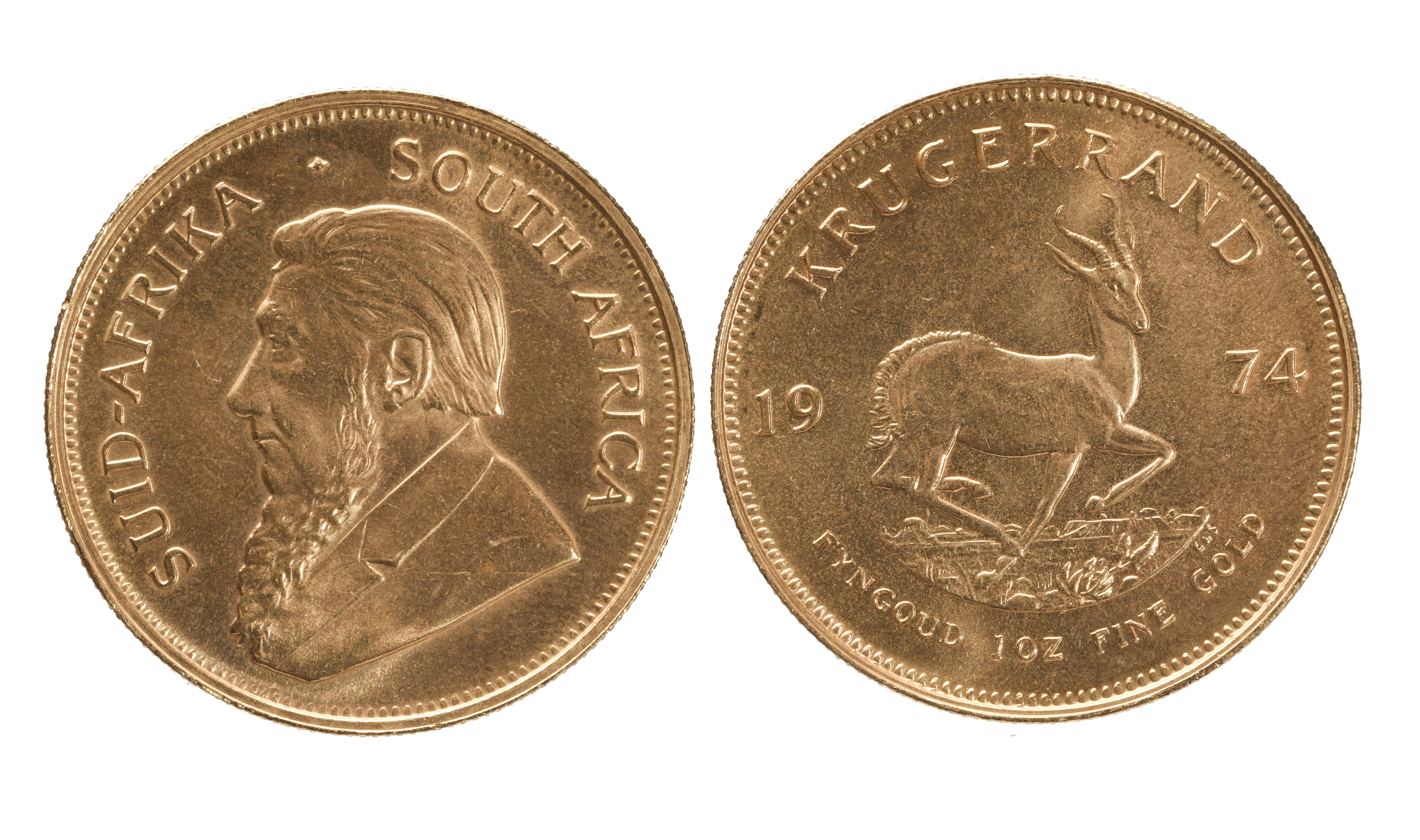 South Africa: gold krugerrand, 1974 (KM 73), extremely fine or nearly so.