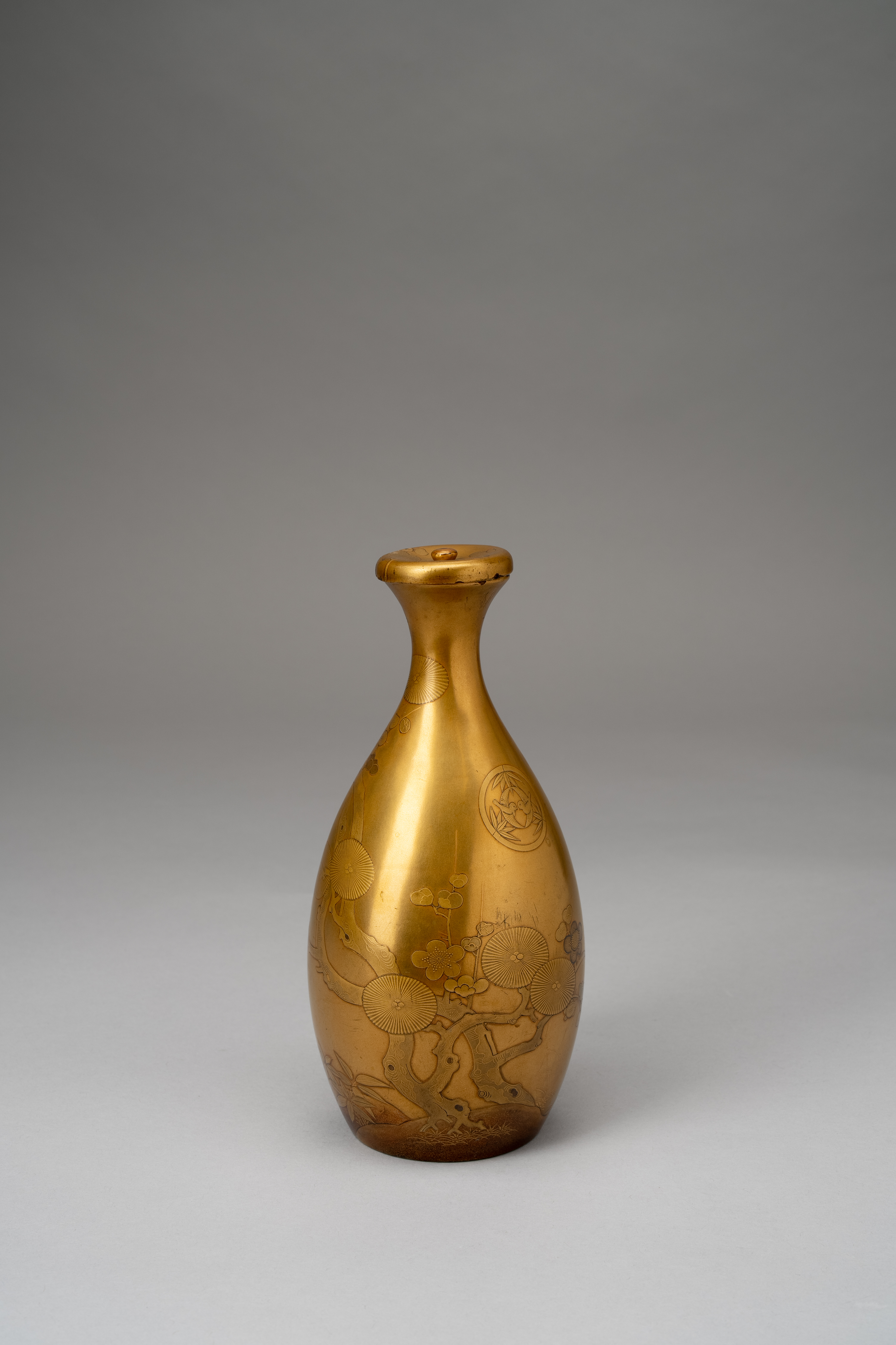 A RARE JAPANESE GOLD LACQUER TOKKURI (SAKE BOTTLE) AND COVER