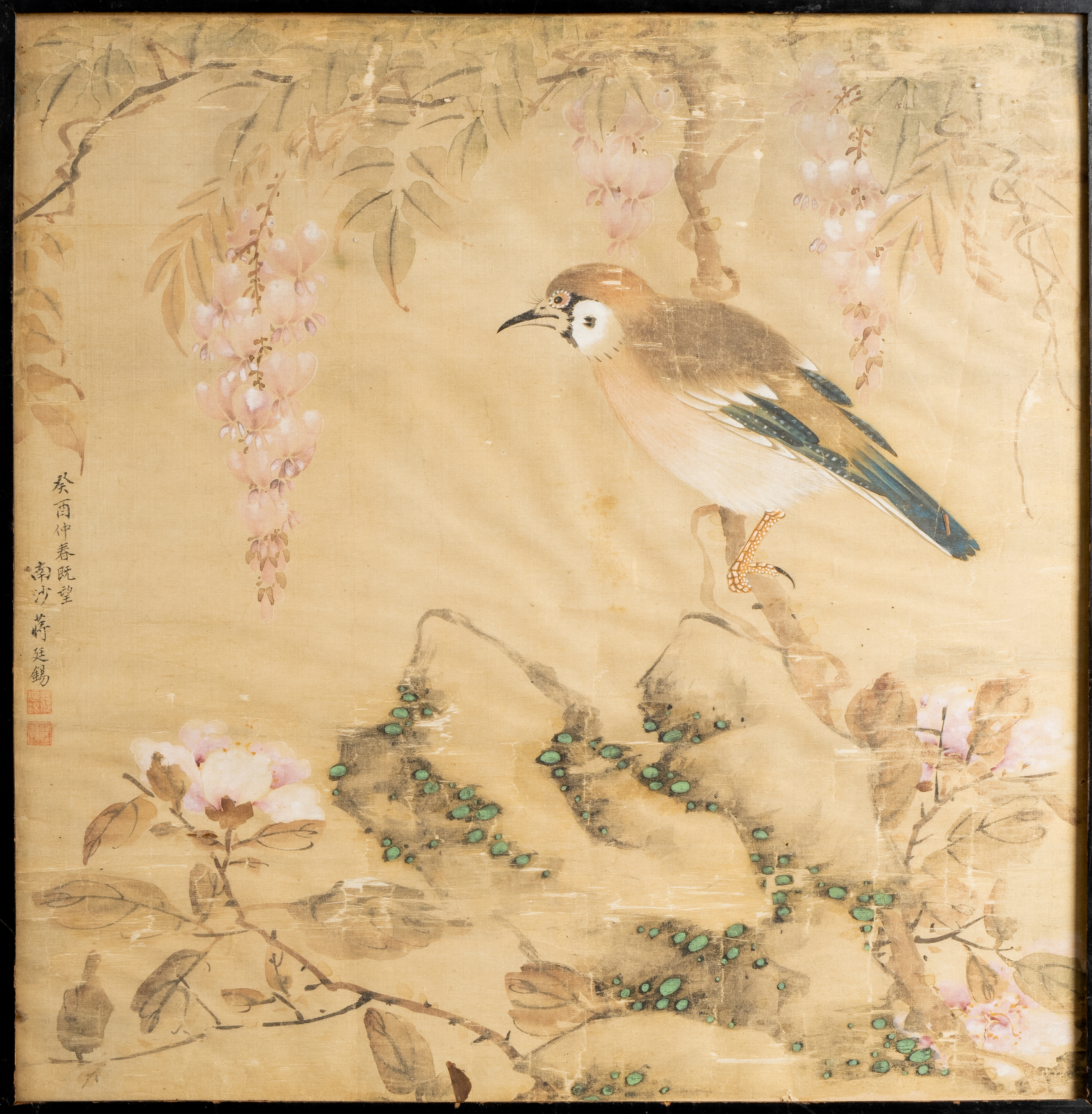 ATTRIBUTED TO JIANG TINGXI (QING DYNASTY) A JAY BENEATH WISTERIA