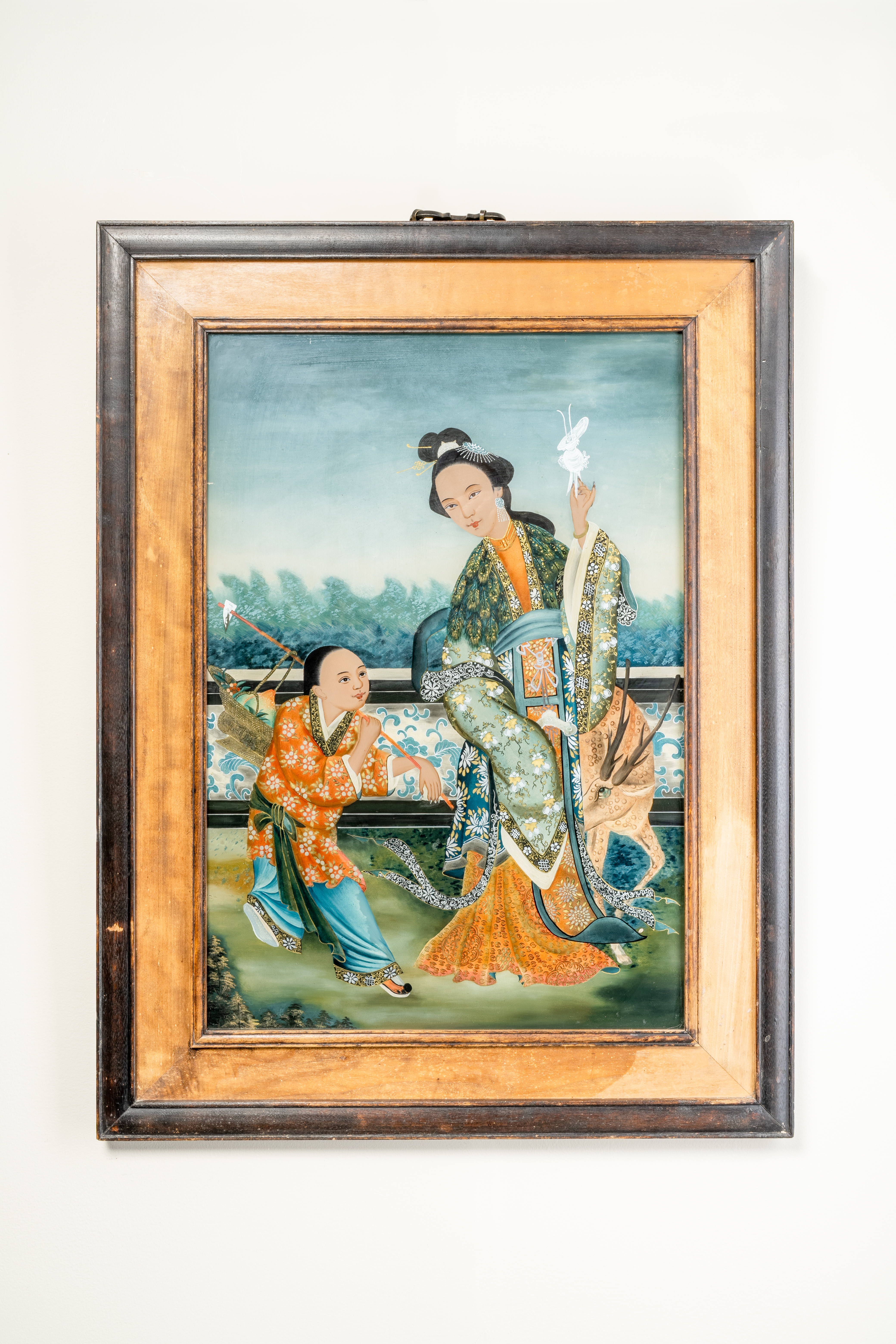A PAIR OF CHINESE REVERSE GLASS PAINTINGS