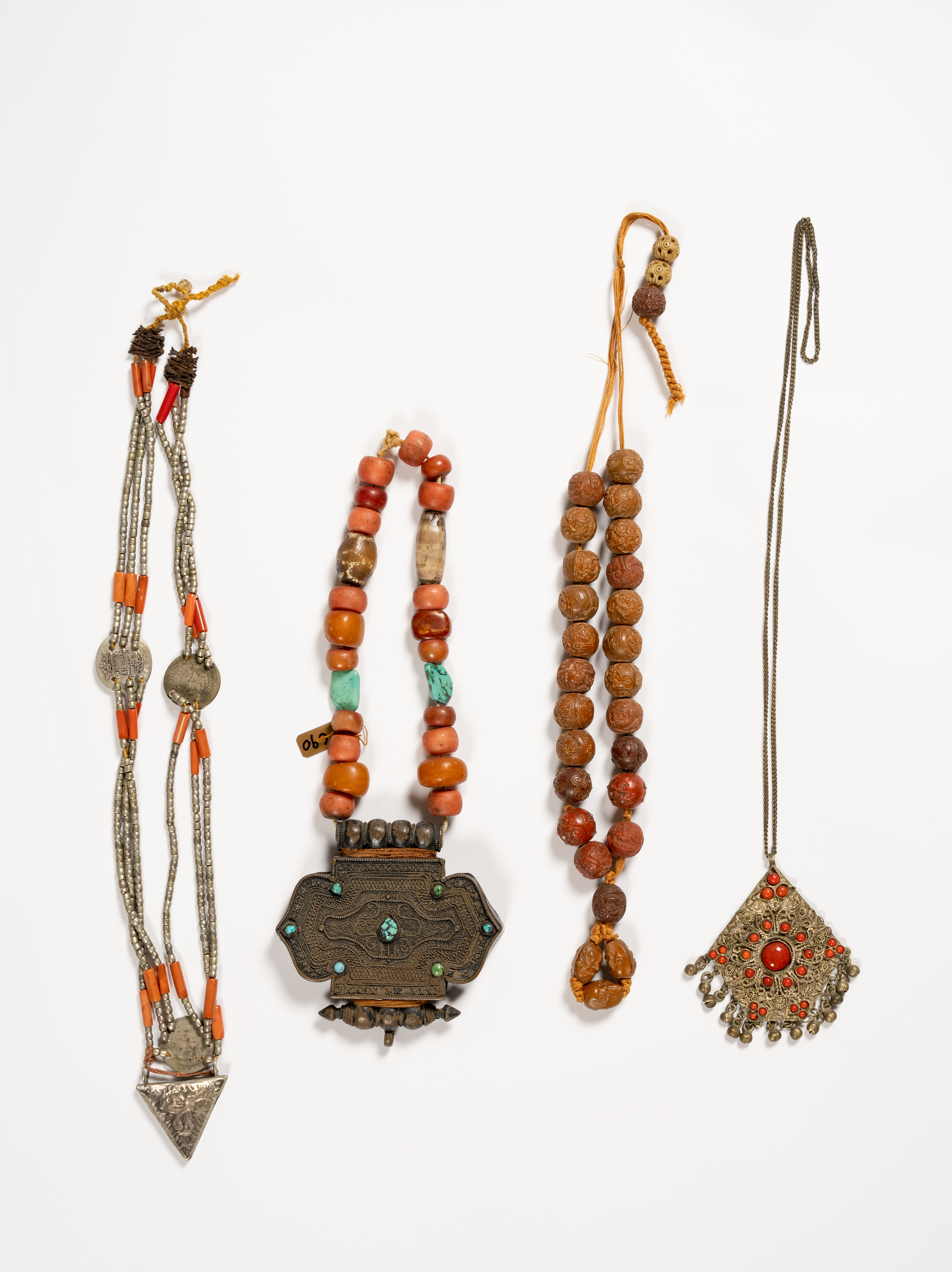 FOUR CHINESE AND TIBETAN NECKLACES19TH AND 20TH CENTURY