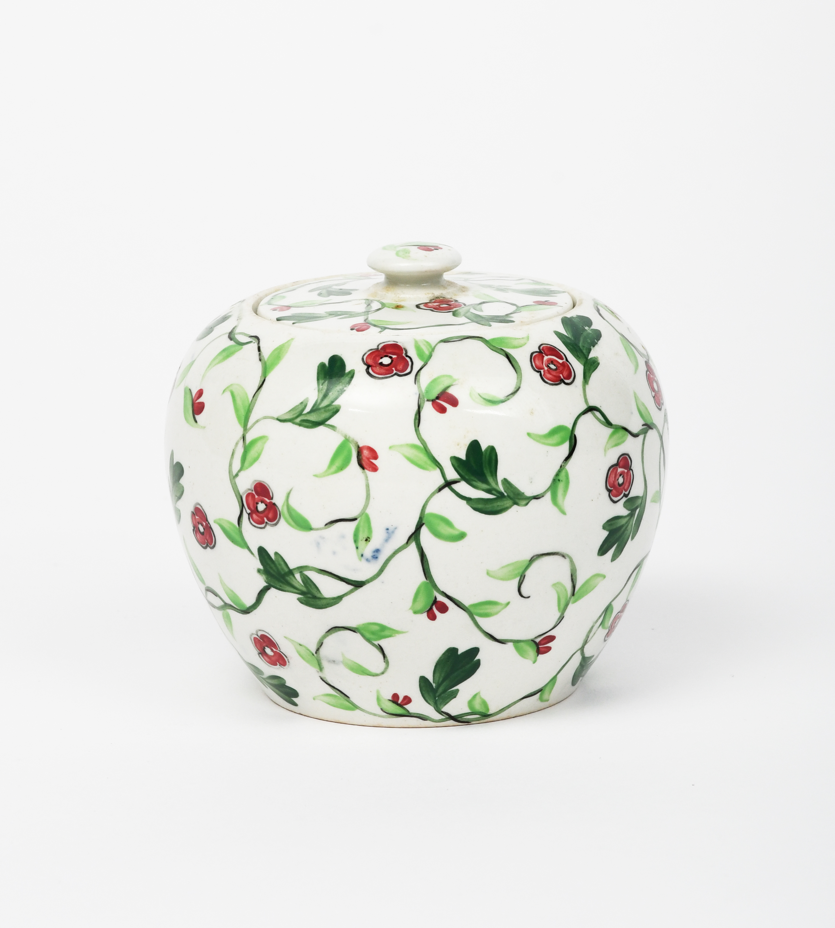 A Wedgwood pot and cover by Louise Powell, pattern no.1051, painted with flowers and foliage in red