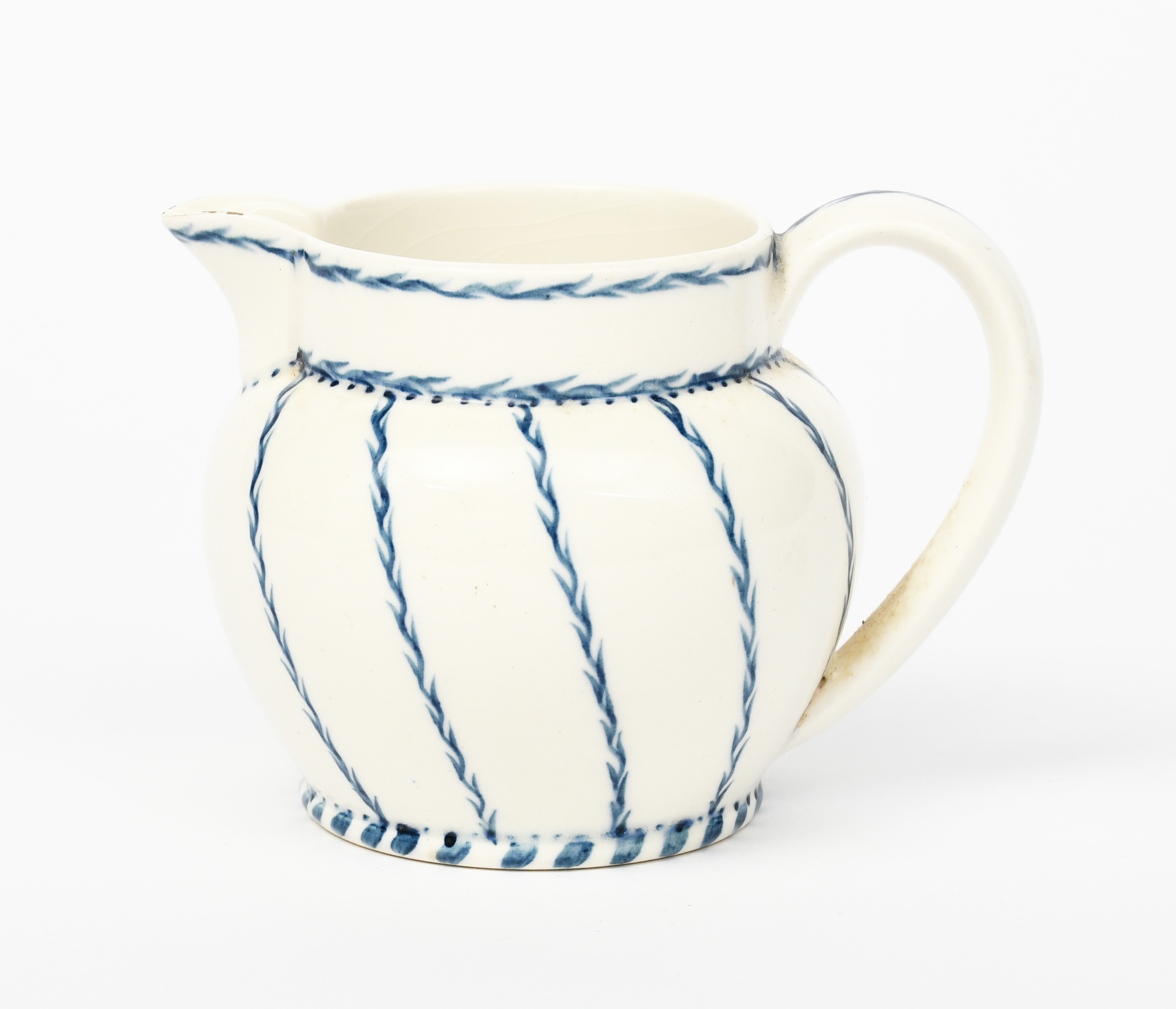 A Wedgwood milk-jug by Grace Barnsley, number 193, ovoid painted with simple blue columns, impressed