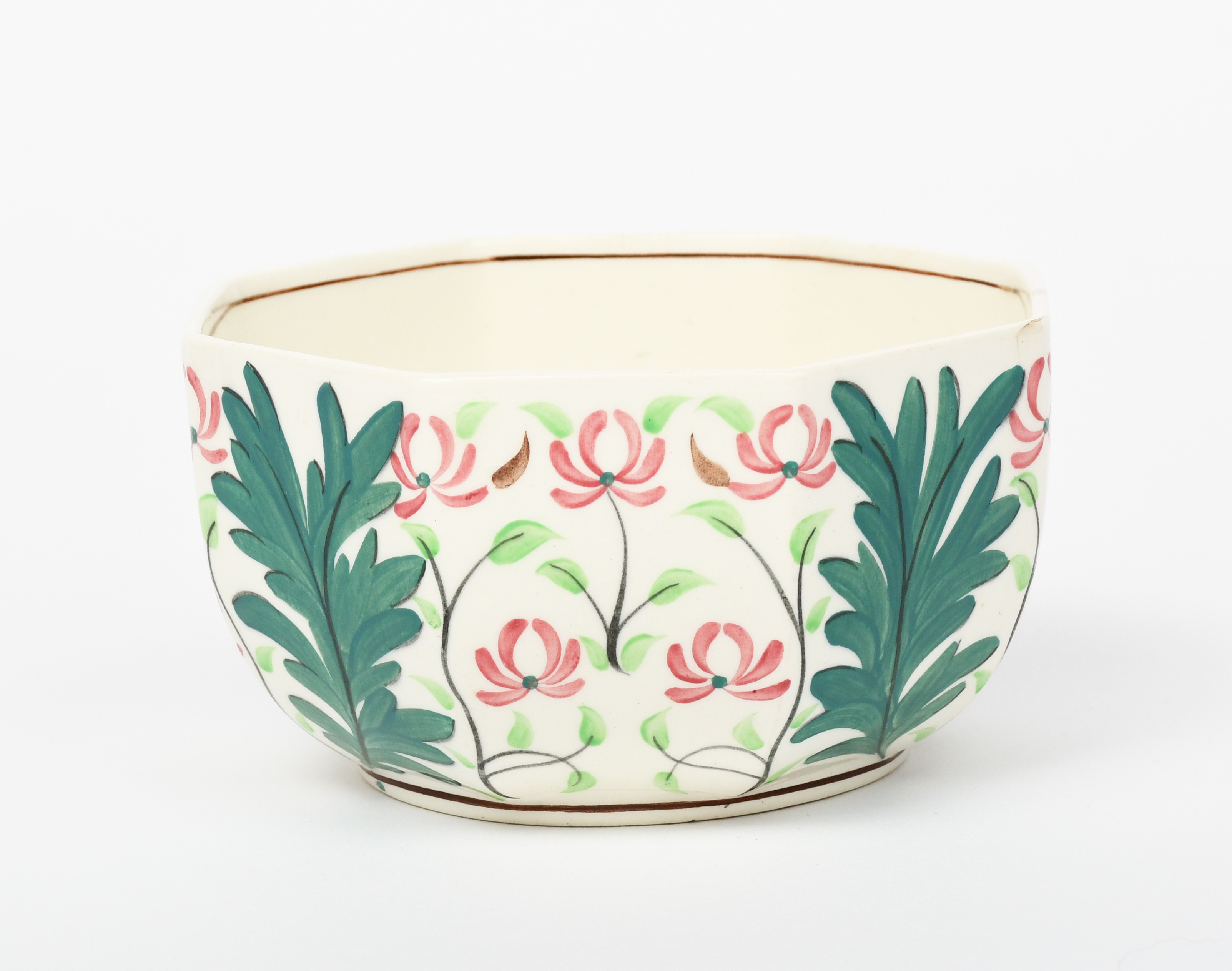 A Wedgwood octagonal bowl designed by Alfred Powell, painted with panels of stylised cyclamen