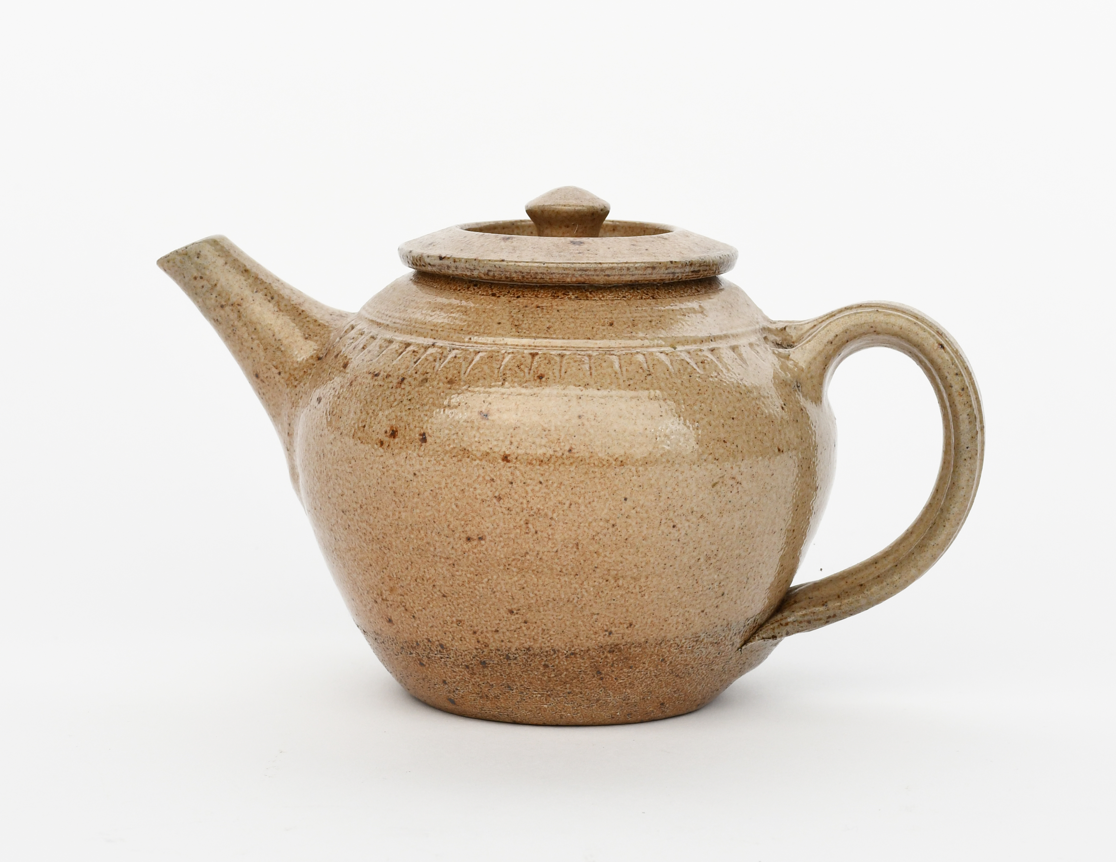 a salt-glaze stoneware teapot and cover, with chatter band,