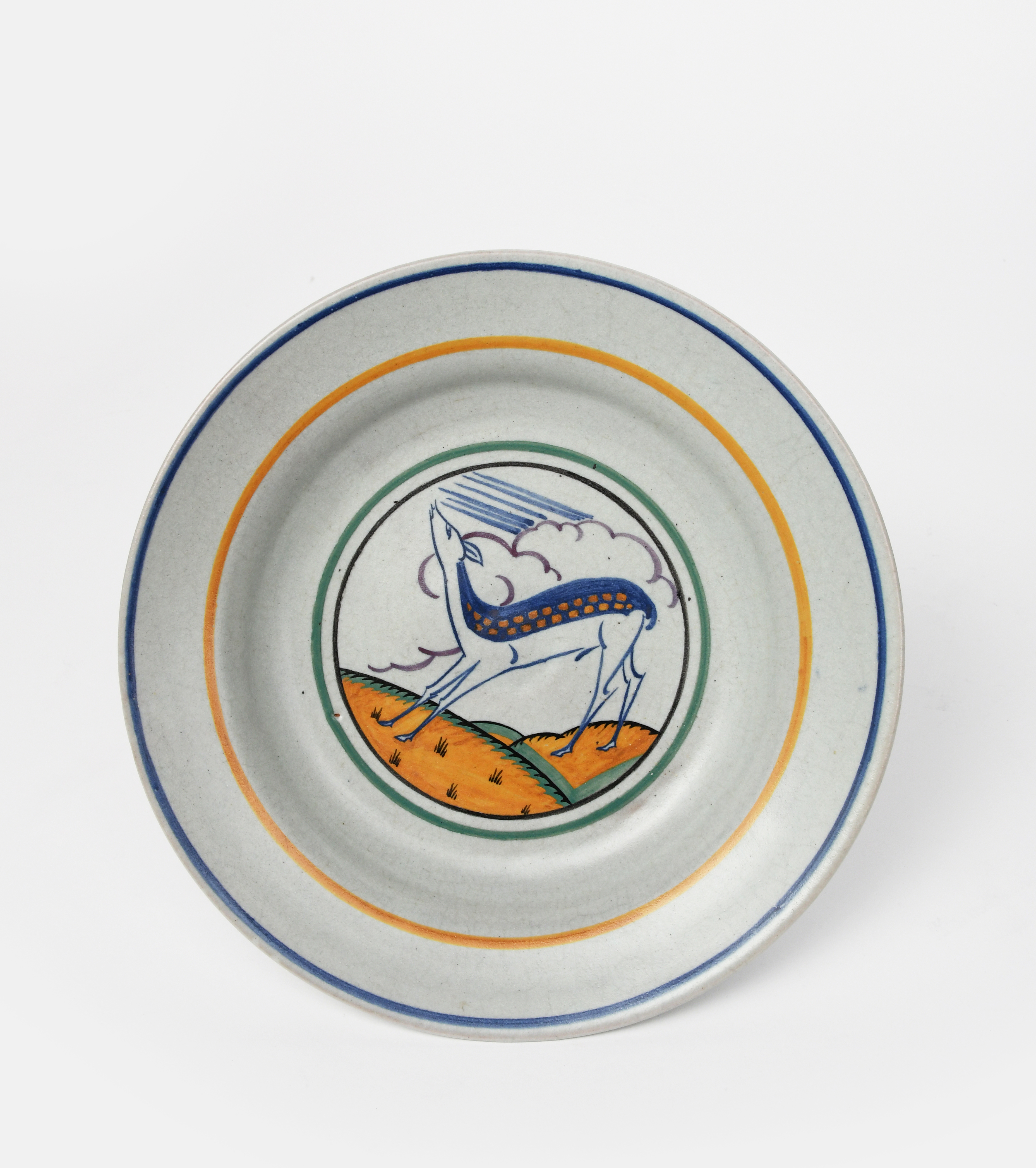 An early Carter Stabler & Adams Poole Pottery Deer plate designed and painted by Truda Adams,