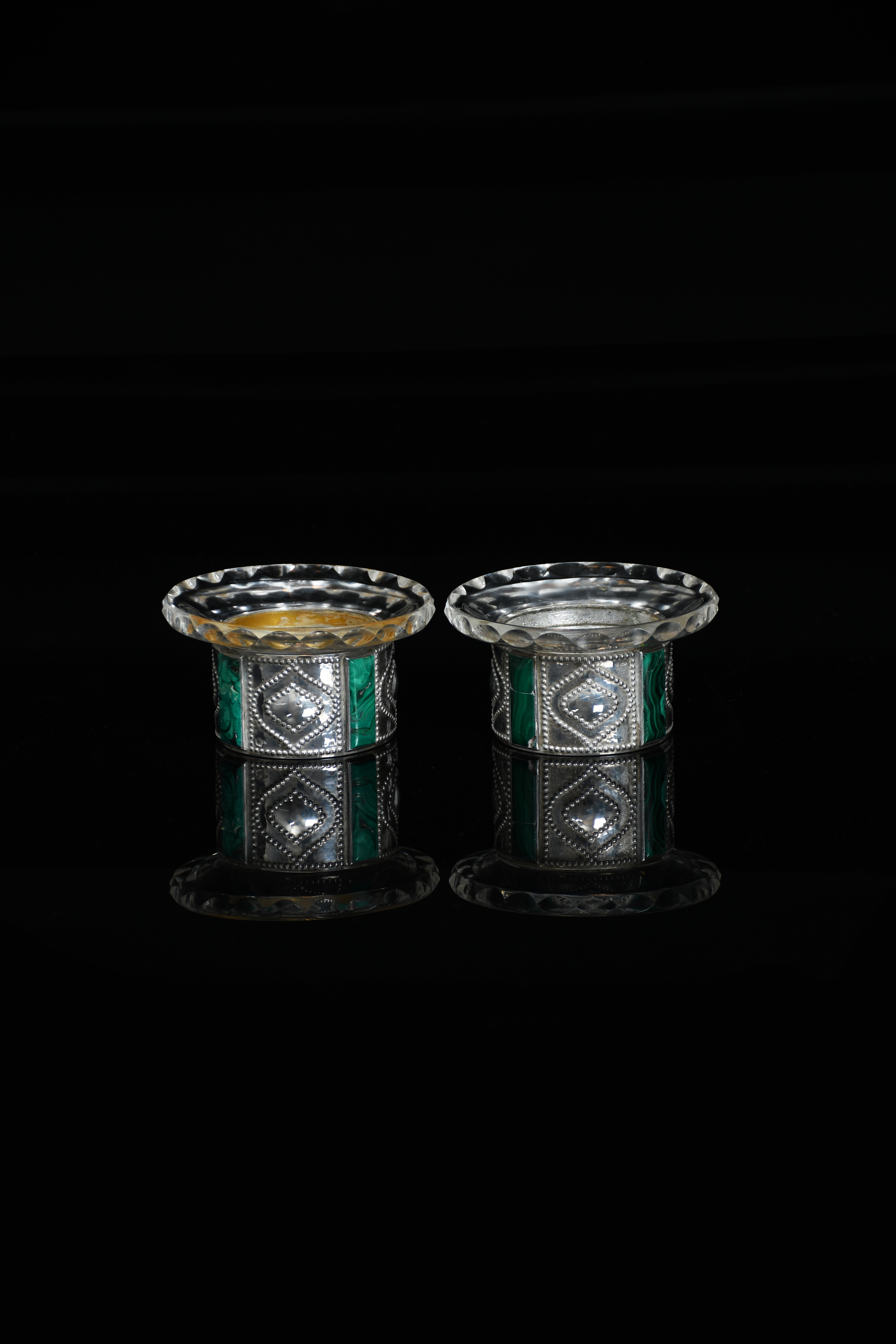A pair of Viennese silver and malachite table salts designed by Josef Hoffmann for Palais Stoclet