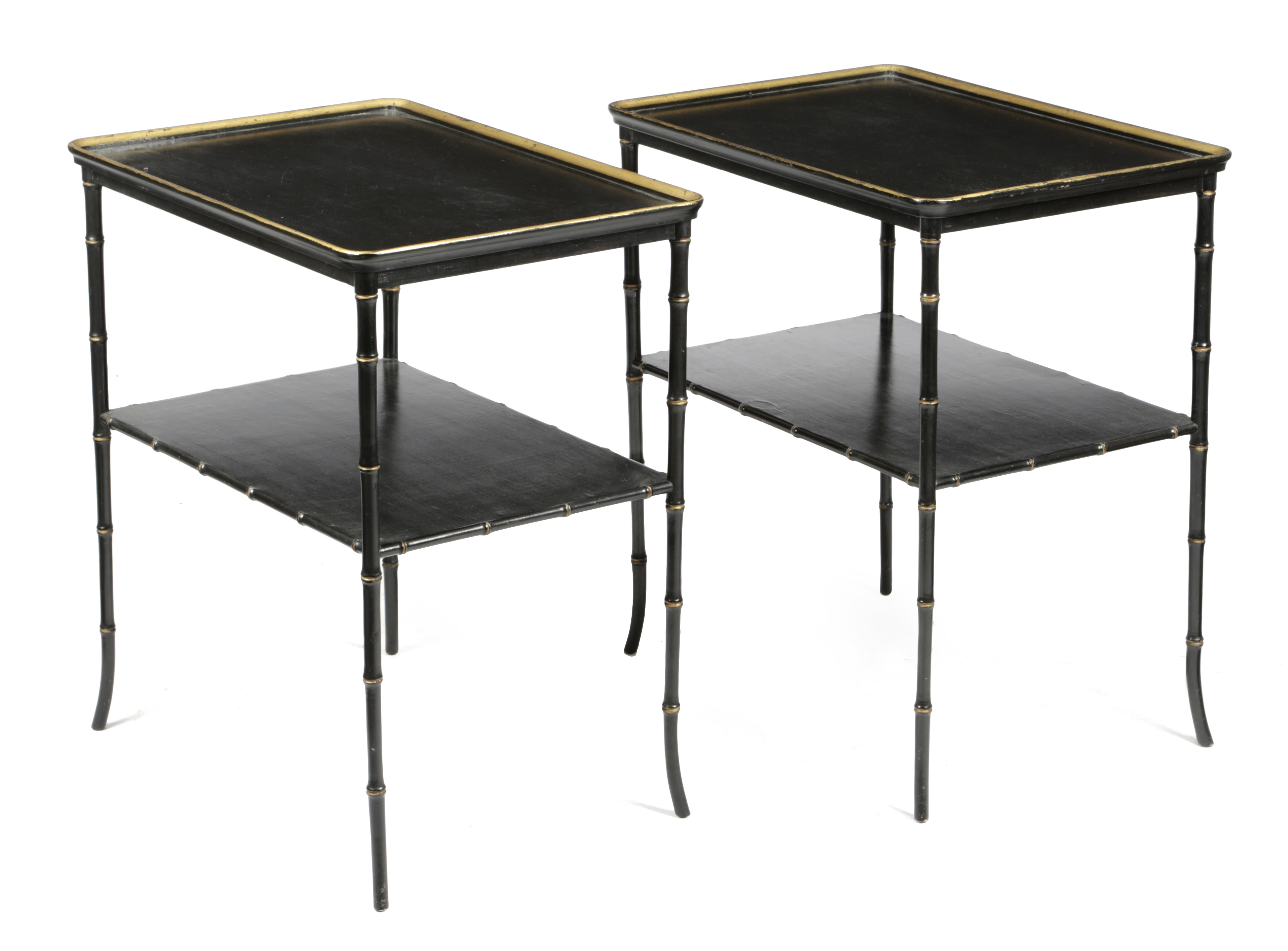 A PAIR OF EBONISED AND PARCEL GILT FAUX BAMBOO OCCASIONAL TABLES
