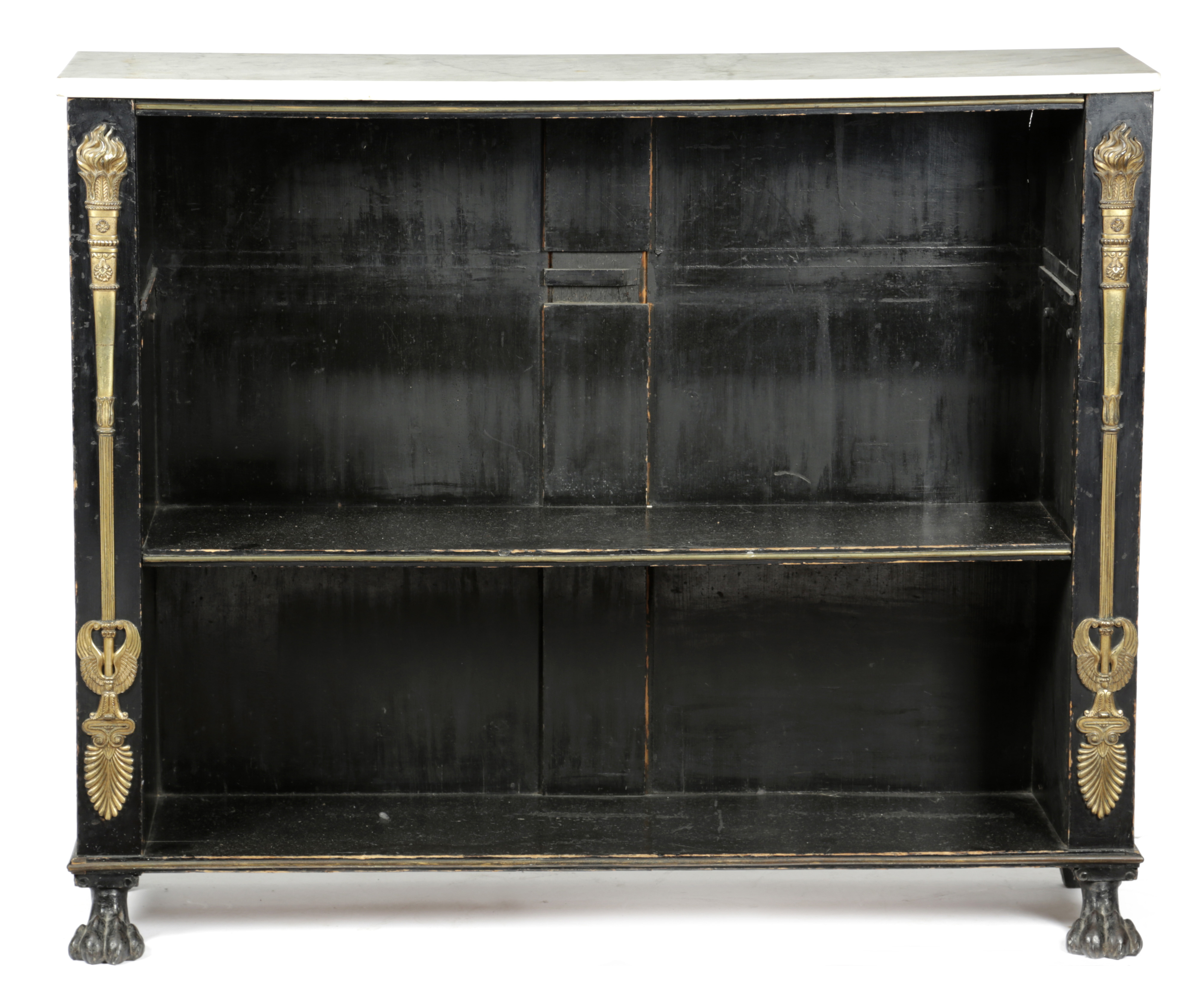 A REGENCY EBONISED AND ORMOLU MOUNTED OPEN BOOKCASE