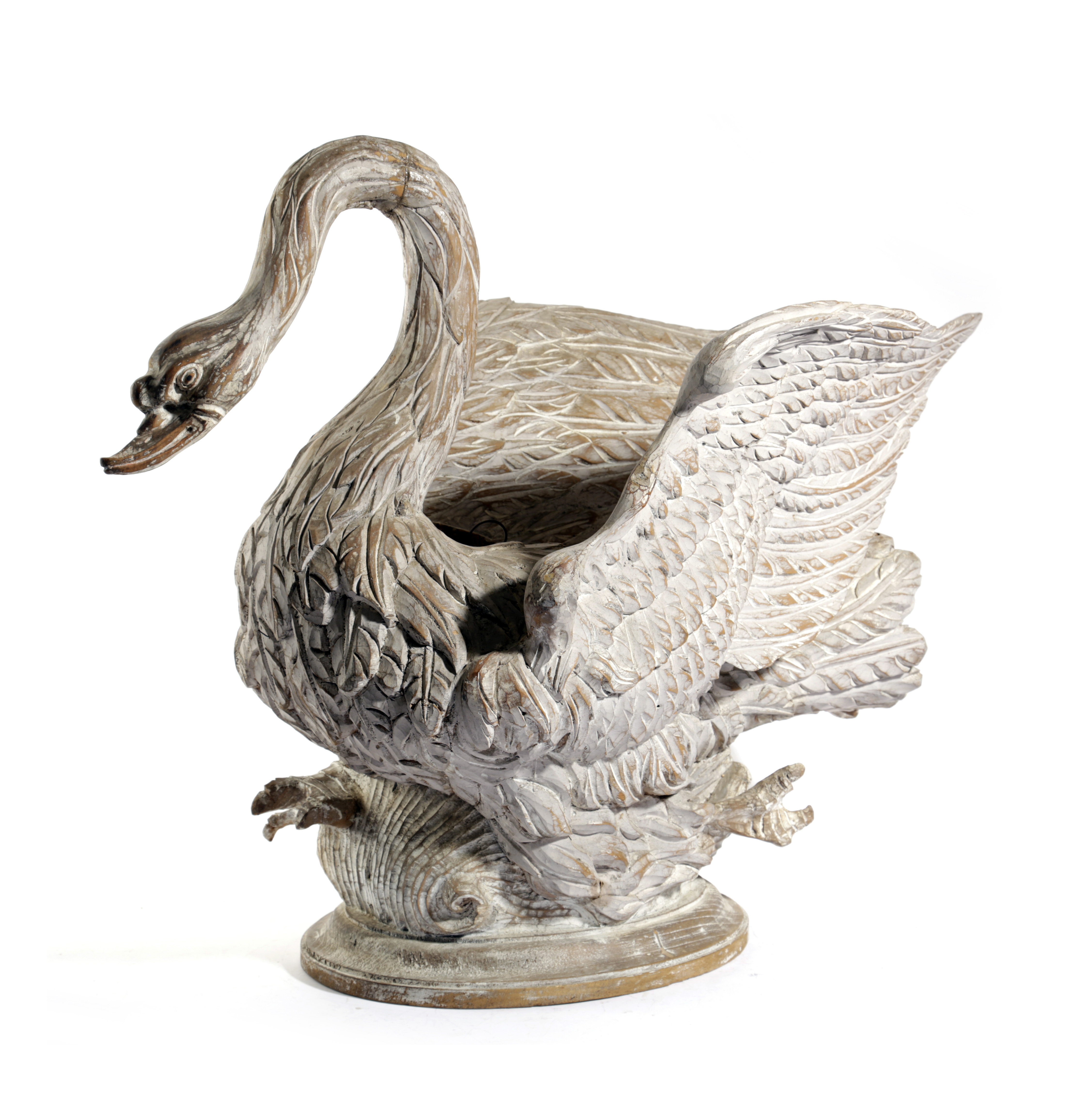 A LARGE CARVED WOOD SWAN JARDINIÈRE