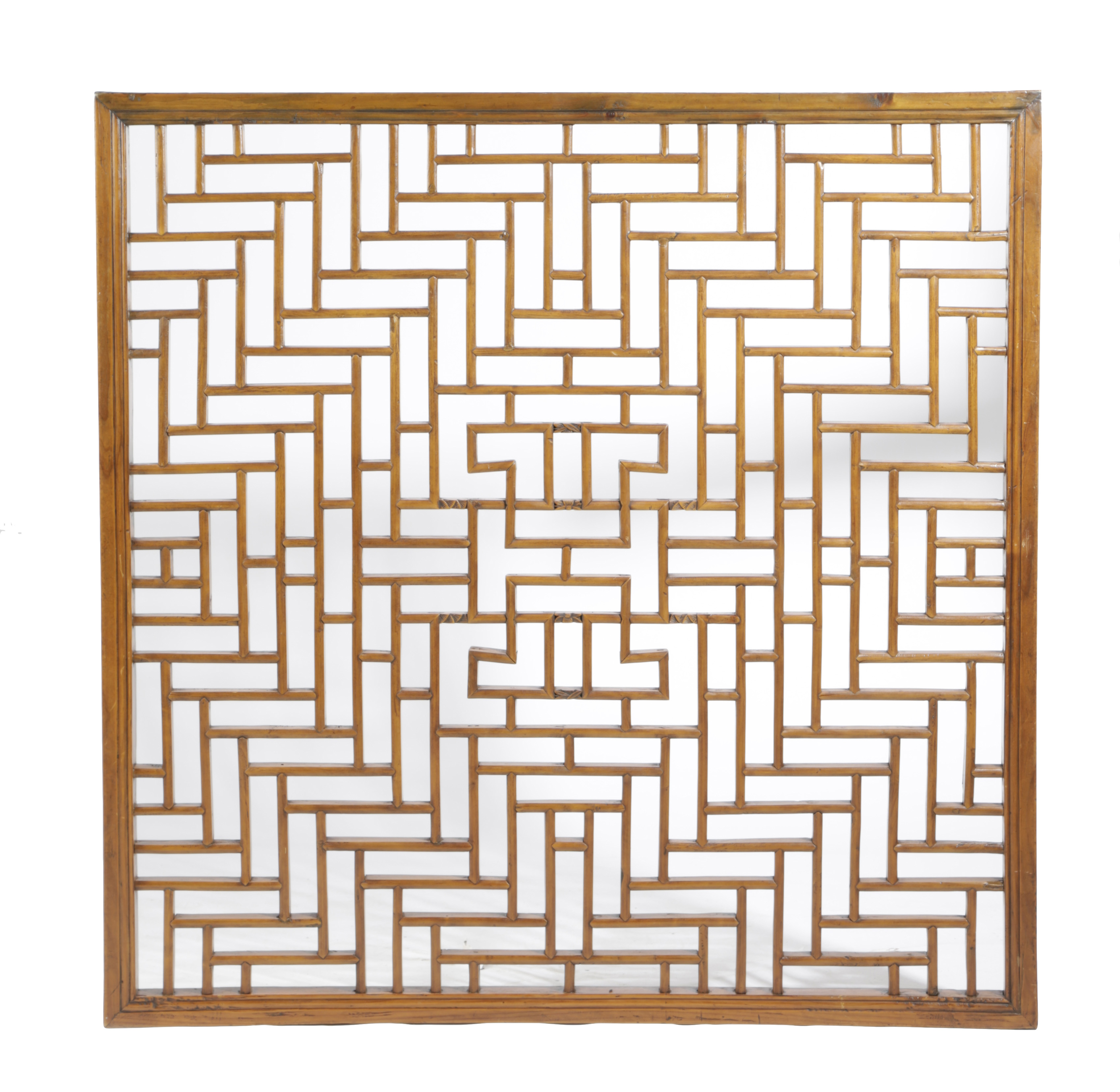 possibly a footrest, of square form with geometric lattice decoration with carved foliate highlights